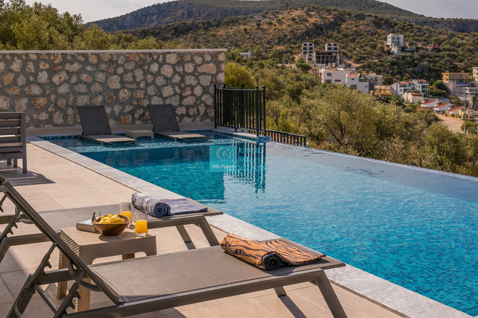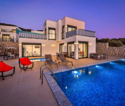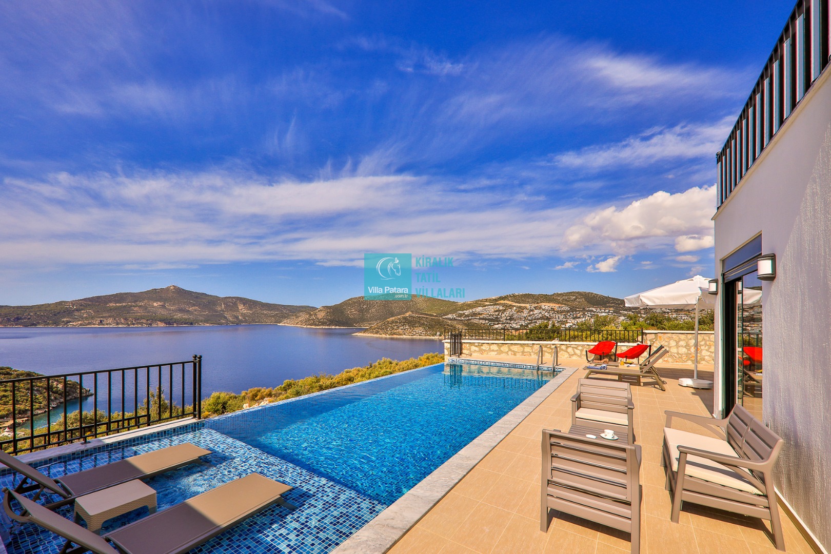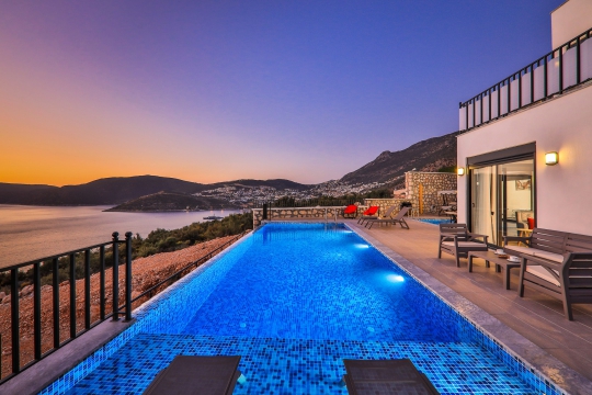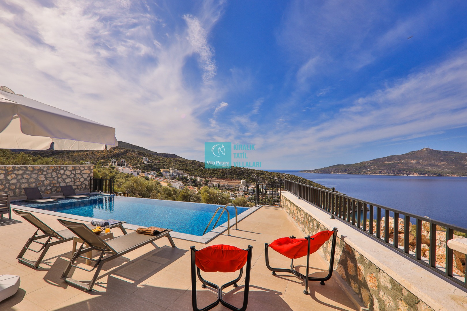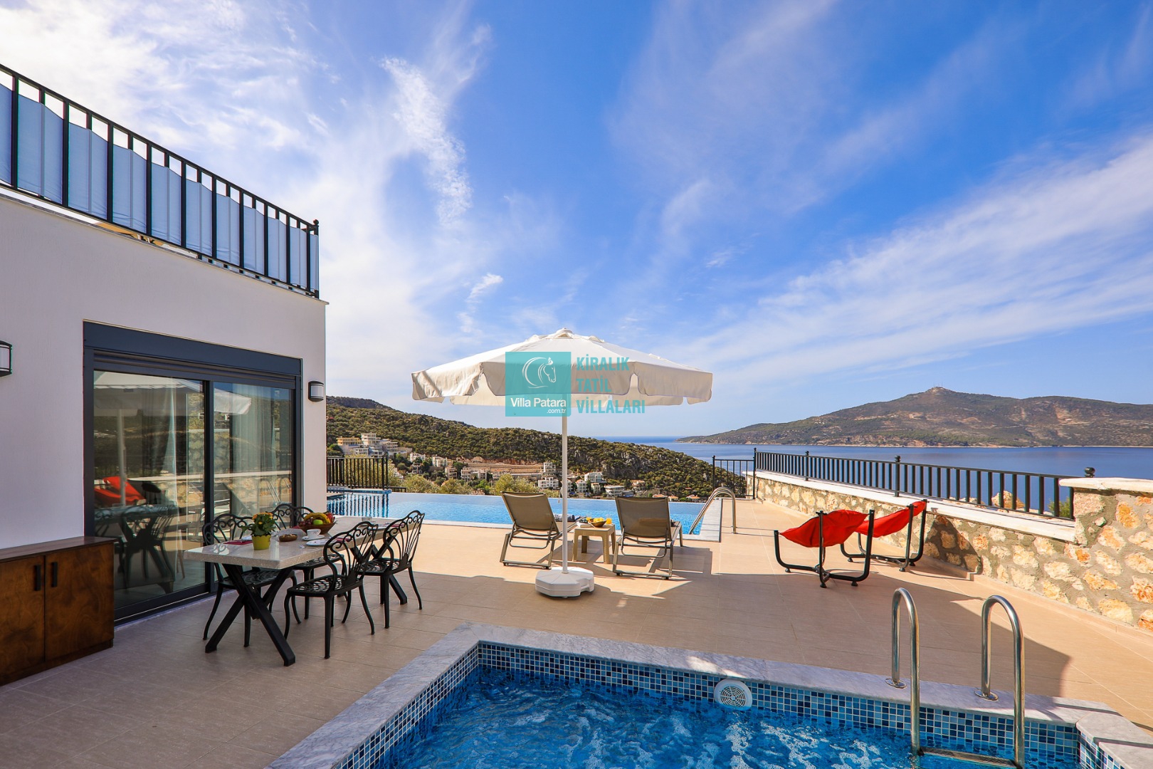 Kalkan’ın Kışla mevkisinde çekirdek aileler ya da balayı çiftleri için uygun olan villamız, 2 yatak odası ile 4 kişilik konaklama kapasitesine sahiptir. Deniz manzaralı villalar ve jakuzili villalar kategorisindeki villamızın, havuz terasında ısıtmalı 2'inci. bir havuzu vardır. Bu havuz sayesinde soğuk günlerde de deniz manzarası eşliğinde havuz keyfine devam edebilirsiniz.