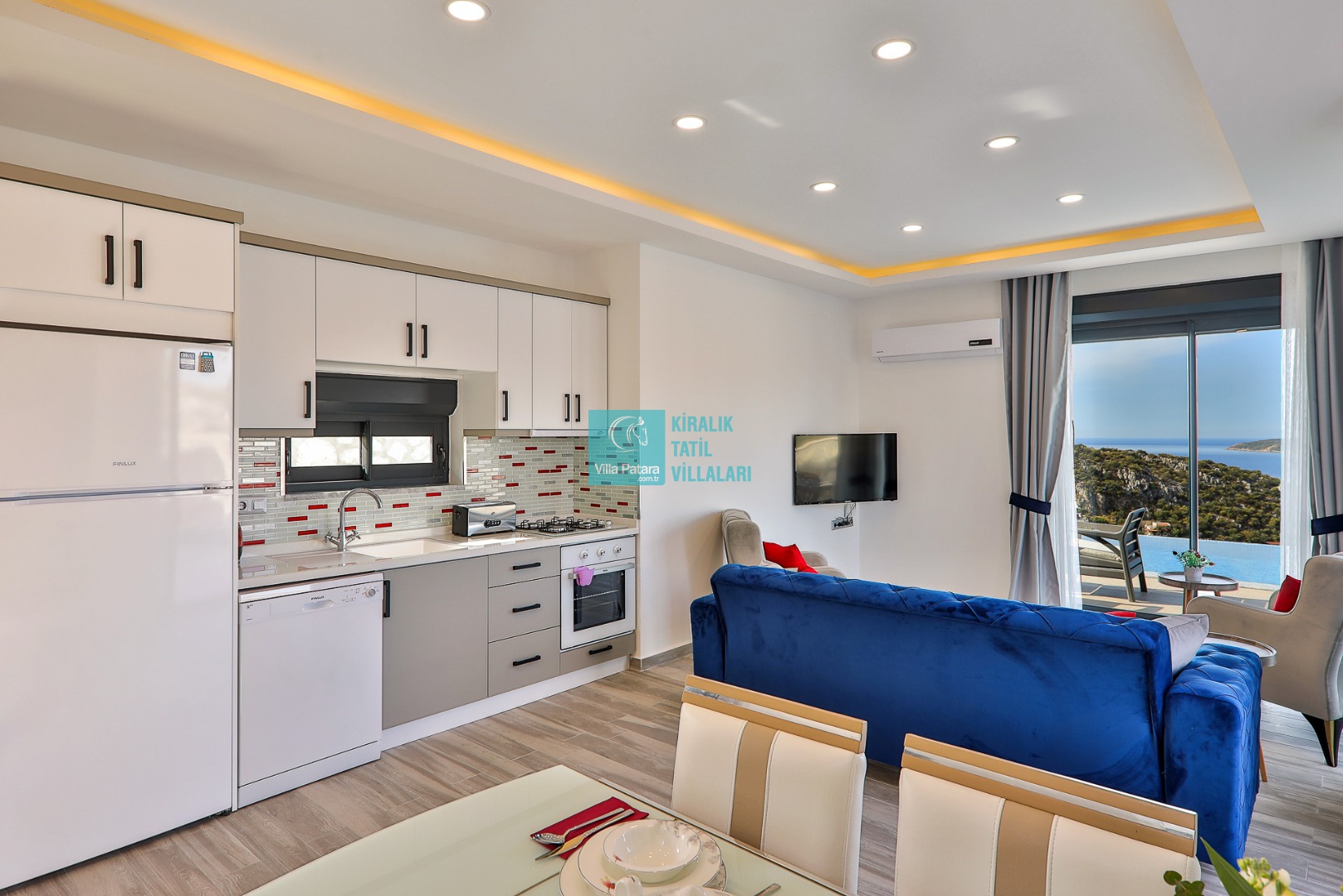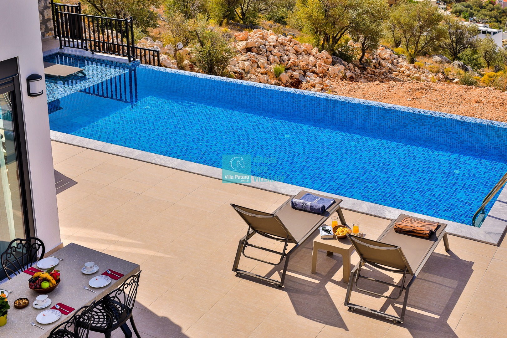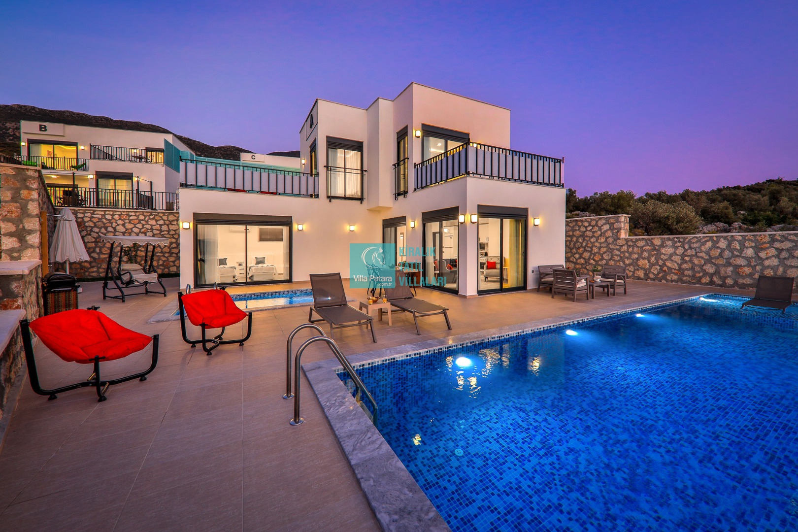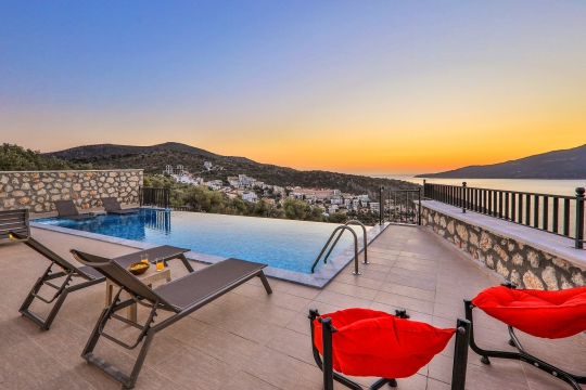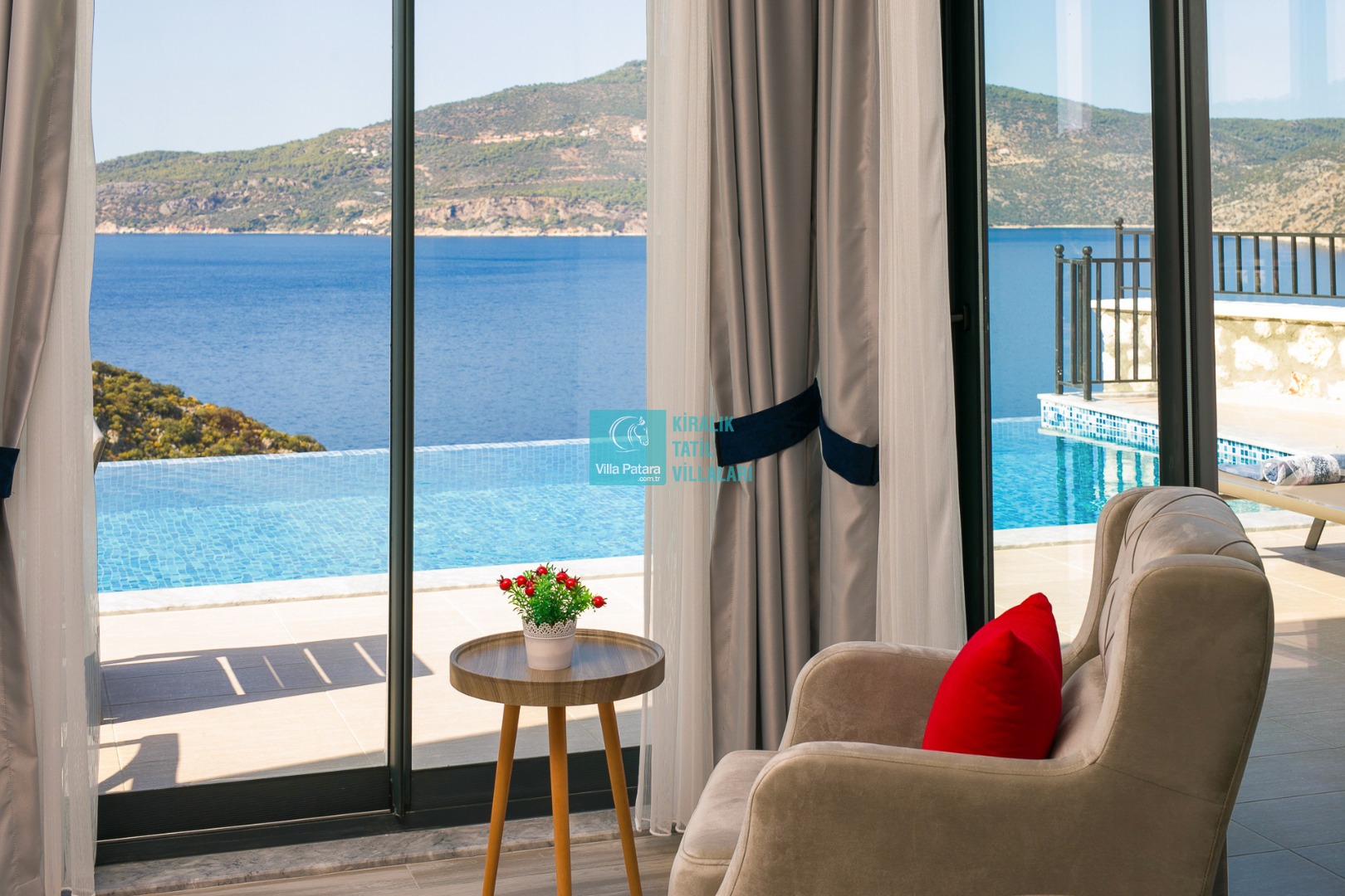 Kalkan’ın Kışla mevkisinde çekirdek aileler ya da balayı çiftleri için uygun olan villamız, 2 yatak odası ile 4 kişilik konaklama kapasitesine sahiptir. Deniz manzaralı villalar ve jakuzili villalar kategorisindeki villamızın, havuz terasında ısıtmalı 2'inci. bir havuzu vardır. Bu havuz sayesinde soğuk günlerde de deniz manzarası eşliğinde havuz keyfine devam edebilirsiniz.