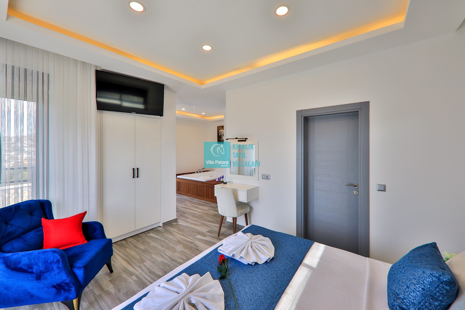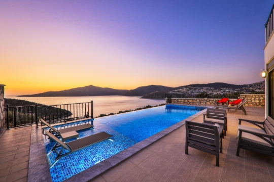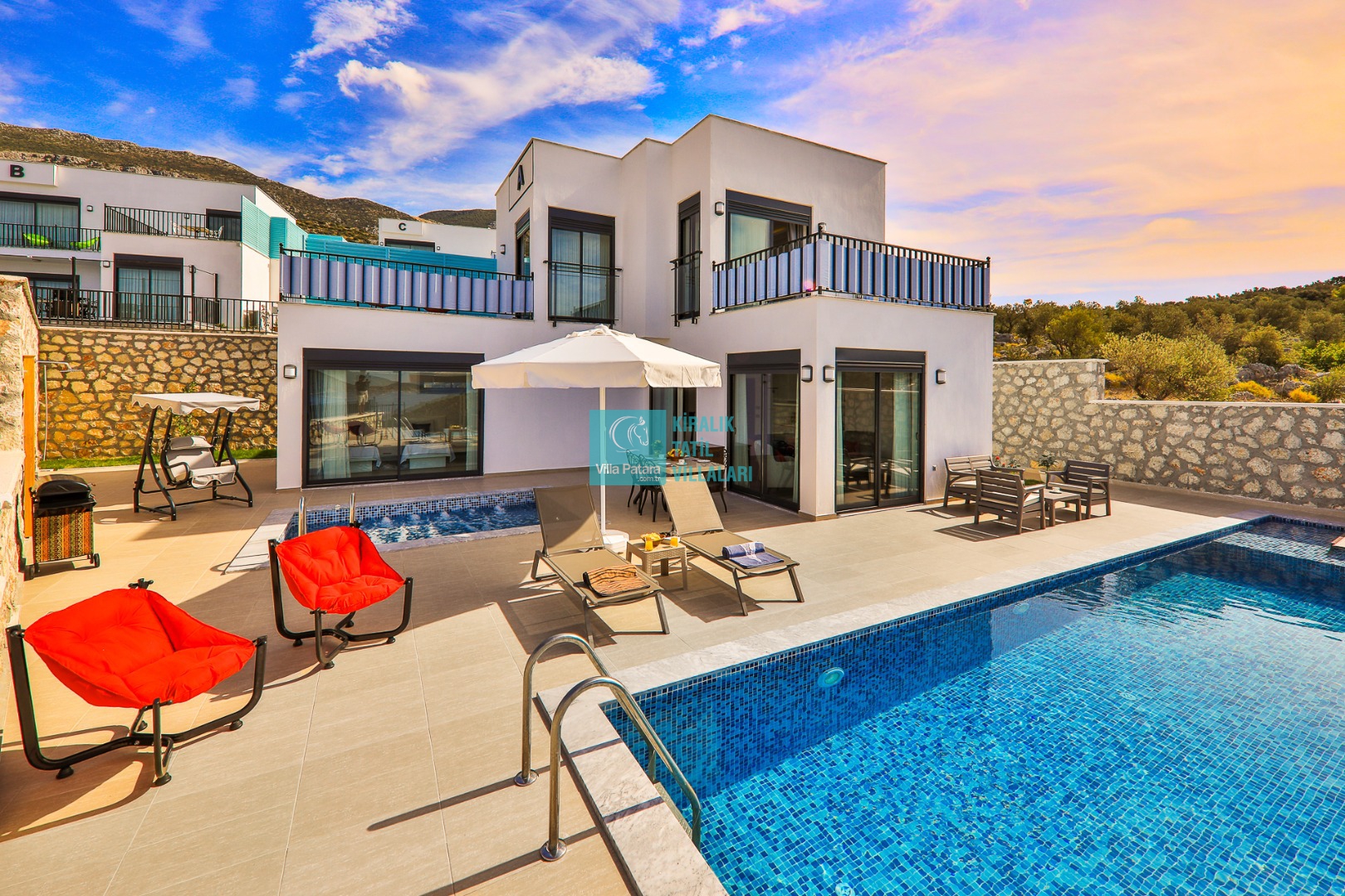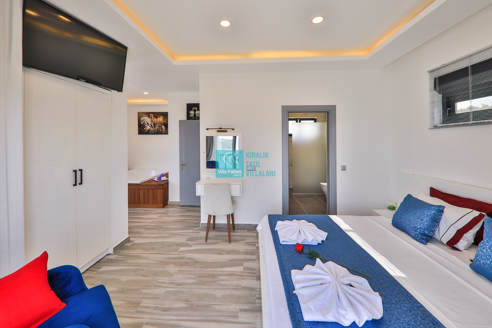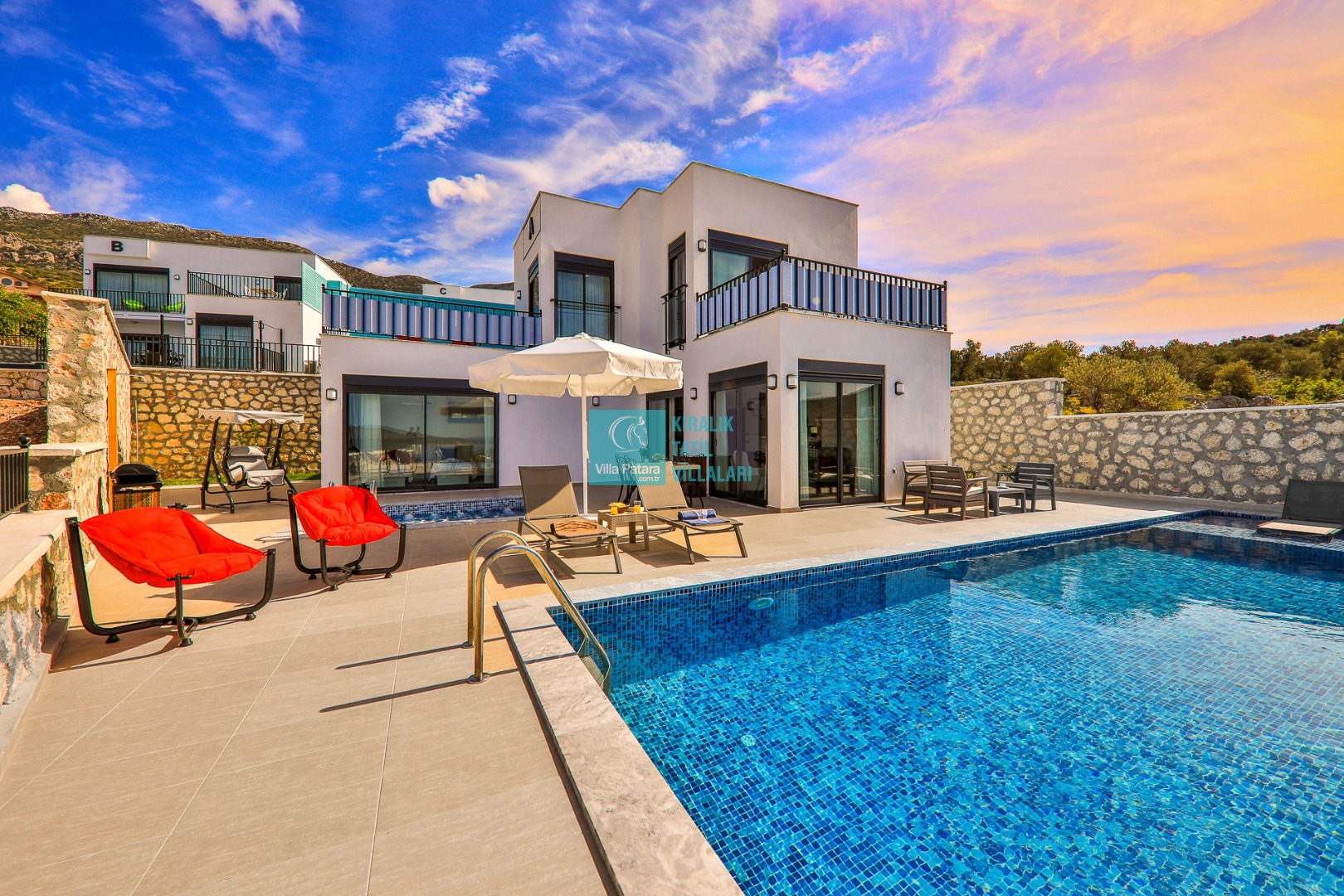 Kalkan’ın Kışla mevkisinde çekirdek aileler ya da balayı çiftleri için uygun olan villamız, 2 yatak odası ile 4 kişilik konaklama kapasitesine sahiptir. Deniz manzaralı villalar ve jakuzili villalar kategorisindeki villamızın, havuz terasında ısıtmalı 2'inci. bir havuzu vardır. Bu havuz sayesinde soğuk günlerde de deniz manzarası eşliğinde havuz keyfine devam edebilirsiniz.
