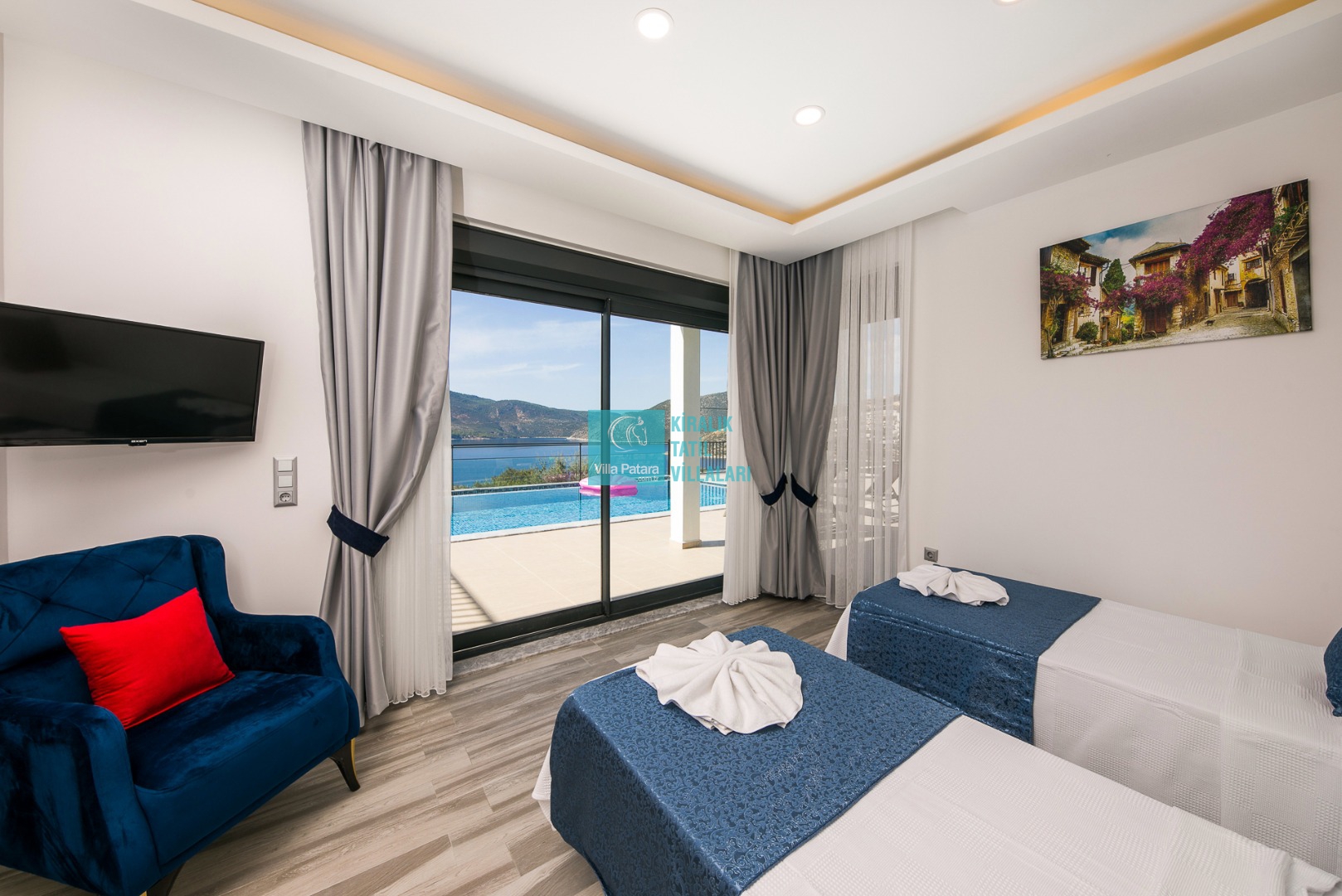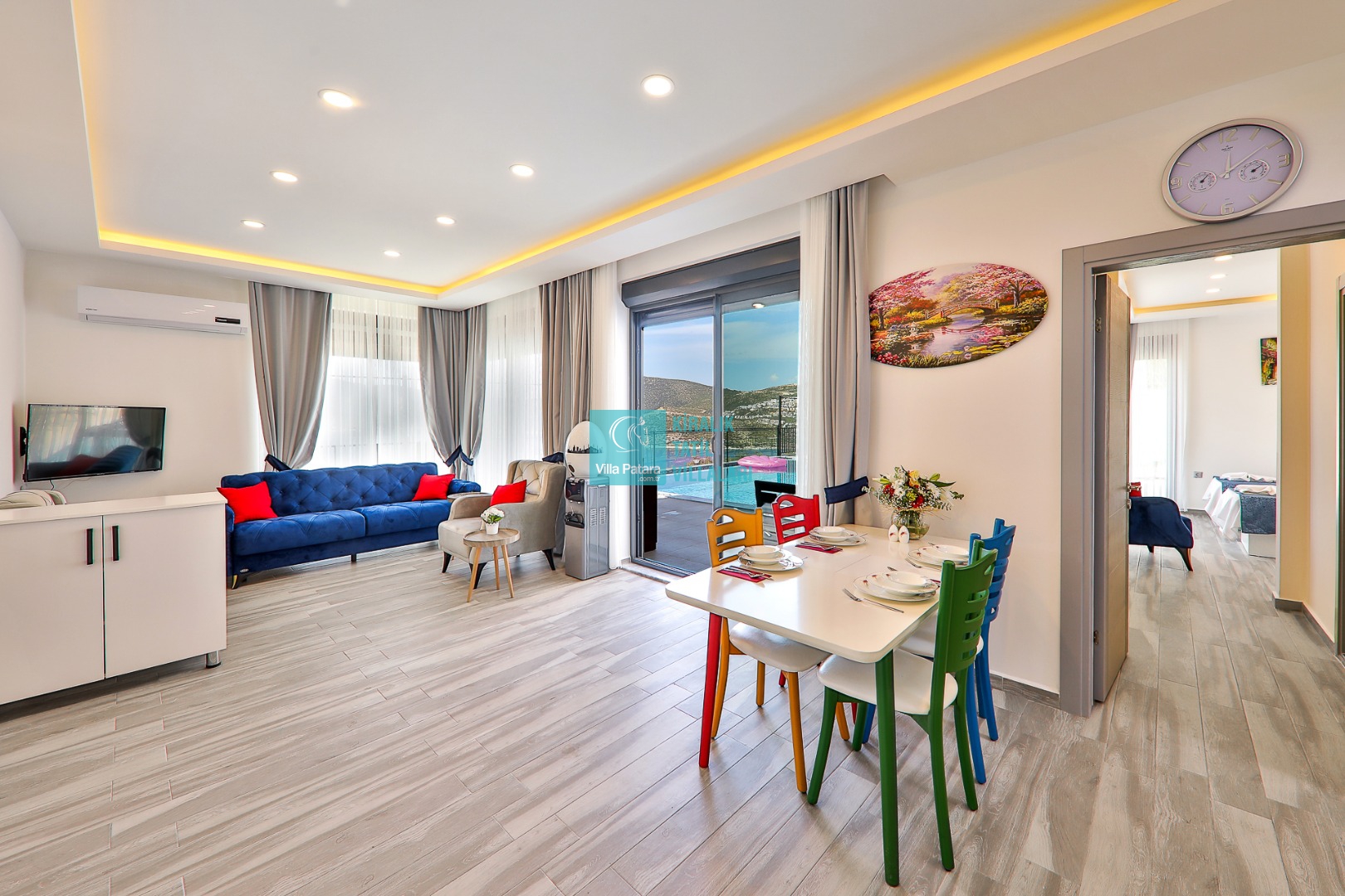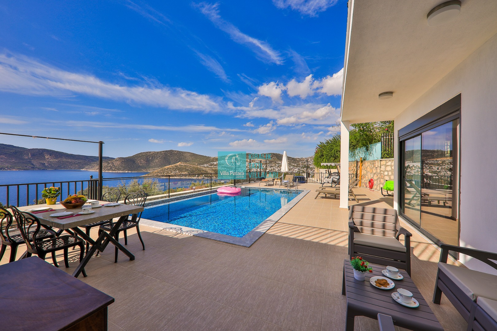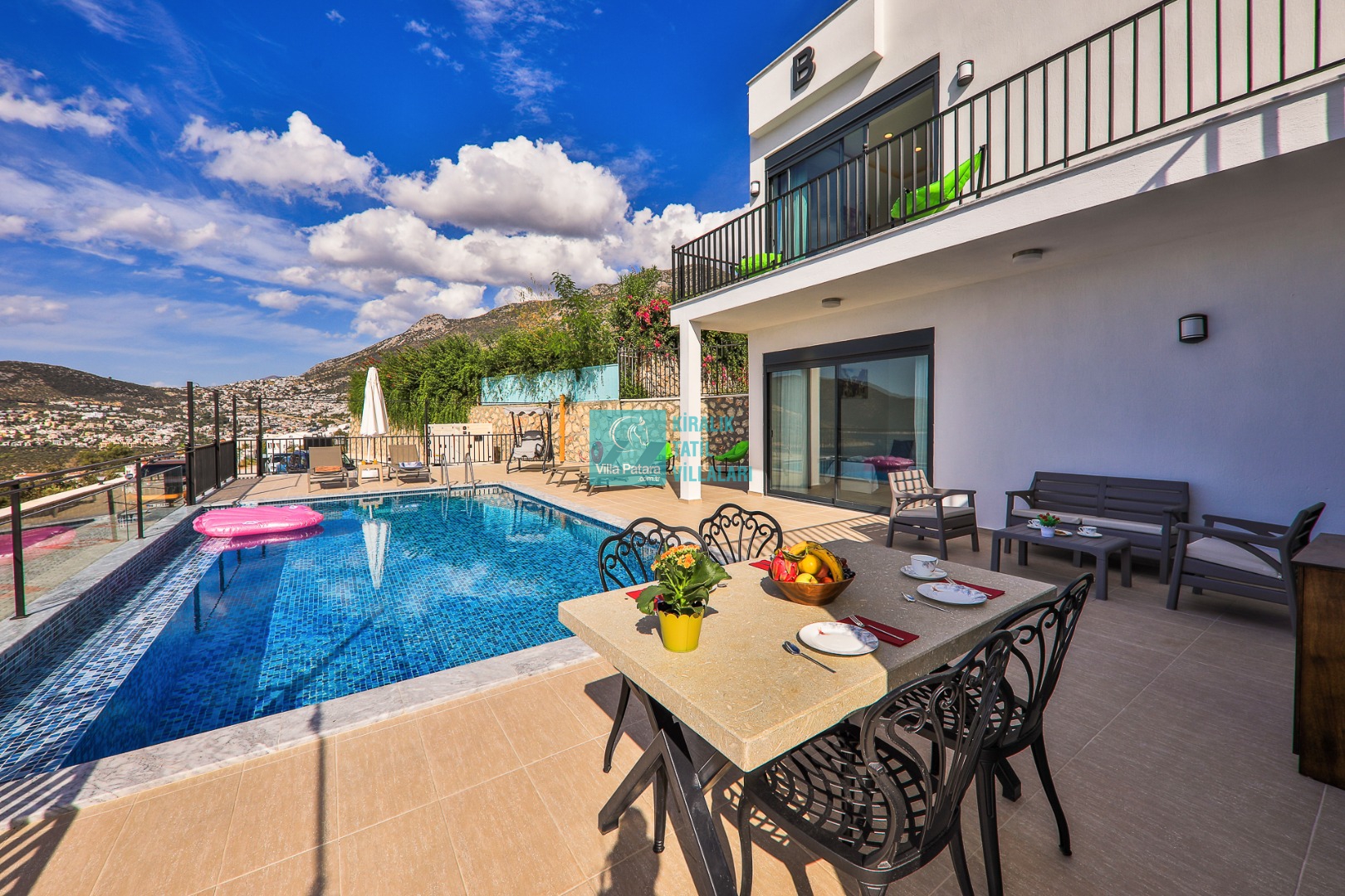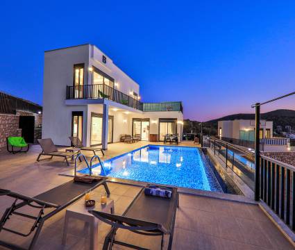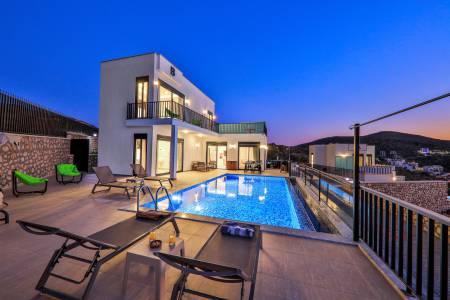 Villa Nazlı B, Kalkan Kışla mevkiinde 2 yatak odalı 4 kişi kapasiteli deniz manzaralı size özel kiralık villamızdır. Muhteşem deniz manzarasına sahip villamız denize yürüme mesafesinde yer almaktadır. Havuz terası oldukça geniş ve ferah olarak dizayn edilen villamızın havuzunda yüzerken muhteşem deniz manzarasının ve gün batımının tadını doyasıya çıkarabileceksiniz. Denize yakın ve deniz manzaralı olan lüks villamız çekirdek aileler ve balayı çiftlerimiz için oldukça ideal bir seçim olacaktır. Eksiksiz araç-gereçli olarak dizayn edilen villamızda kendi evinizdeymiş gibi hissedecek aileniz ile keyifli ve huzurlu bir tatil imkanı bulabileceksiniz. Size özel havuzu sayesinde tüm yılın vermiş olduğu yorgunluğu üzerinizden atabilme fırsatı bulabileceksiniz.