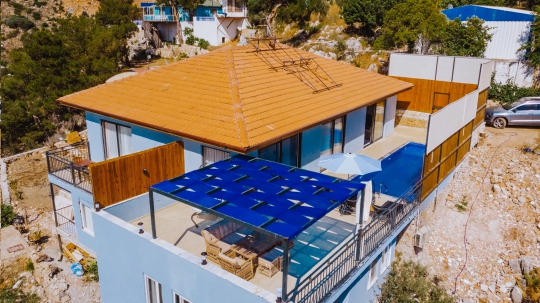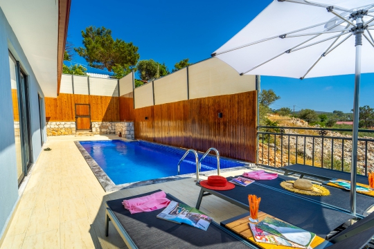 Villa Neptun 1, Kalkan Patara'nın giriş tepesinde yer alan havadar, vadi ve deniz manzaralı, 2 yatak odalı 4 kişilik konaklama kapasiteli villadır.