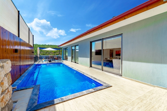 Villa Neptun 1' nun deniz manzaralı havuz terası ve bahçesi korunaklı olup dışarıdan gözükmemektedir. Balayı çiftleri ve küçük çekirdek aileler için ideal bir seçenektir.