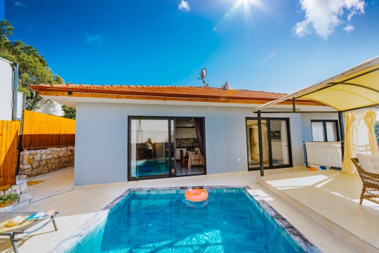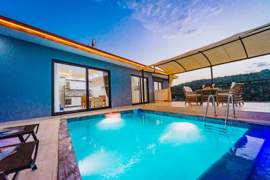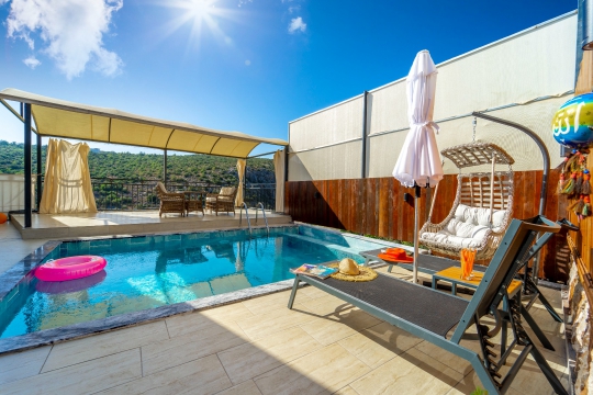 Villa Neptun 2, Kalkan Patara'nın giriş tepesinde yer alan havadar, vadi ve deniz manzaralı, 1 yatak odalı 2 kişilik konaklama kapasiteli villadır.