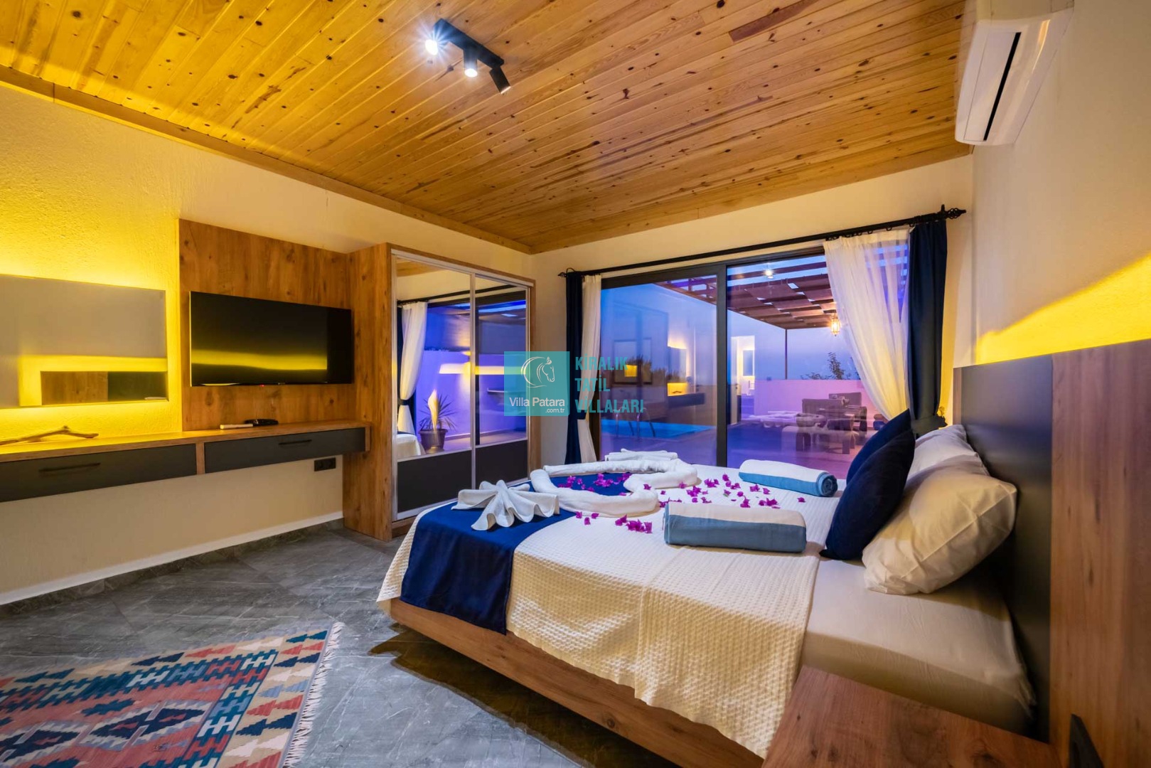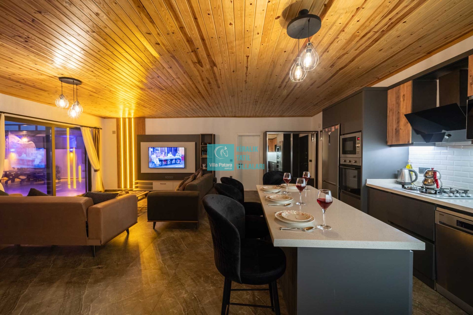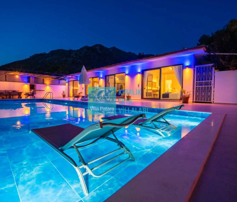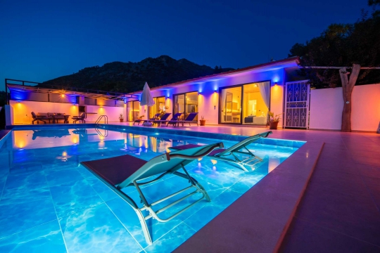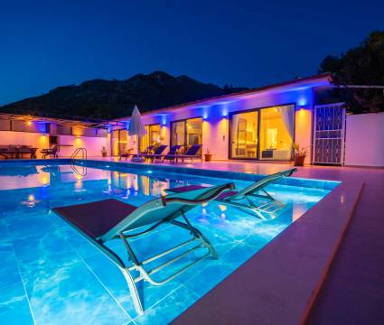 Villa Neptune Üzümlü, Kalkan'ın Üzümlü bölgesinde yer alan 2 yatak odalı ve 5 kişilik kapasiteye sahip olan, size özel villamızdır. Villamız muhteşem bir doğa manzarasına sahip olmakla birlikte özenli lüks dekoru, modern mutfağı, eksiksiz araç-gereçleri ve konforlu eşyaları sayesinde kendinizi evinizde gibi hissedebilecek ve rahat bir tatil geçirme imkanı bulabileceksiniz.