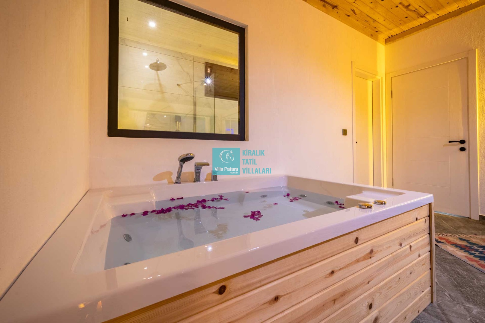 Villamız da bulunan jakuzi ve özel yüzme havuzu sayesinde ruhunuzu ve bedeninizi dinlendirme fırsatı yakalayabileceksiniz. Villamızın özel yüzme havuzunun korunaklı bir şekilde tasarlanması özellikle muhafazakâr ailelerimizin memnuniyeti için yarar sağlamaktadır.