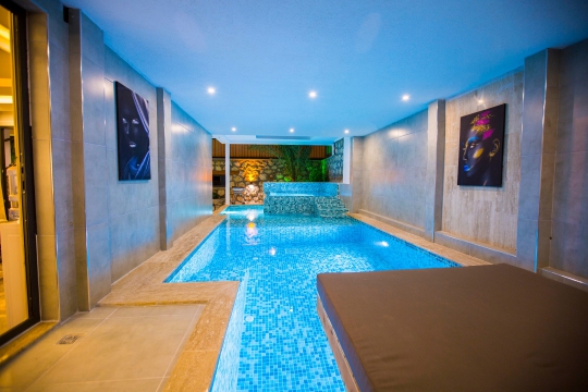 Villanın öne çıkan özelliklerinden biri de özel havuzudur. Mağara havuz tipinde tasarlanmış olan bu havuz, 9,5 metre uzunluğa ve 3,5 metre genişliğe sahiptir. Yüzme alanı 6 metre uzunluğunda olup, havuzun geri kalan kısmı ve açık kısımda bulunan bölüm sığ havuz ve jakuzili havuz bölümünden oluşmaktadır. Havuz, %100 korunaklı olup, dışarıdan görünmeme garantisi vermektedir. Ayrıca, havuzun dış kısımları sonbahar aylarında özel cam sistemler ile kapatılabilmekte ve kış aylarında ısıtma sistemi sayesinde sıcak havuz olarak kullanılabilmektedir.