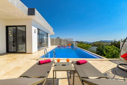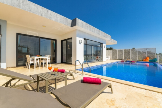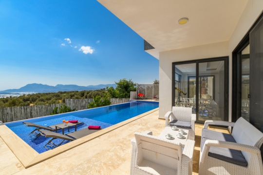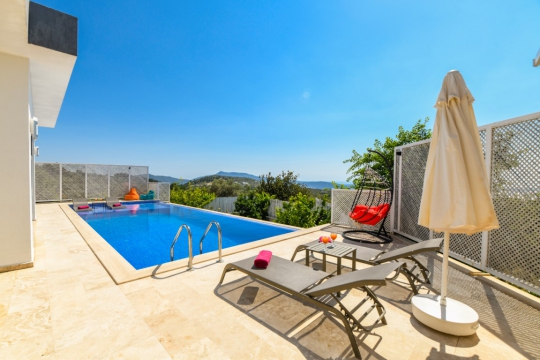 Villa Nur, Kalkan Üzümlü Mahallesinde bulunan muhteşem Patara plajı ile hem deniz manzarası hem de gün batimi manzarası ile misafirlerimizin beğenisini kazanan Villa Nur Özel korunaklı havuzu ile muhafazakâr aileler ve balayı çiftlerinin en çok tercih ettiği villalarımızdandır. Villaciniz ile keyfinize keyif, anılarınıza anı katacak sizin için tasarlanmış bir villamızdır. Şıklığı ile göz kamaştıran villamız sakin, gözlerden uzak tatil geçirmek isteyen sizler için konumlan mistir. Villa Nur Kalkan Üzümlü mahallesindeki market ve restoranlara 250 metre mesafededir. Villamızın salonunda bir adet havuz bulunmaktadır. Özenle dekore edilmiş villamızın salonunda bulunan havuzu ısıtmalı her mevsim için kullanıma uygundur. Birbirine yakın iki villa düşünen misafirlerimiz için villamızın hemen yanında bulunan Villa Sevi bulunmaktadır