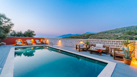 Kalkan Patara bölgesine konumlandırılmış özel havuzlu kiralık tatil villamız. Sizlere huzurlu bir tatilin kapılarını aralıyor, kendine özel havuzu ve bahçesi bulunan villamızda 2 adet double yataklı odalı olup 4 kişi konaklama olanağına sahiptir. Villamız modern şekilde dizayn edilmiş her detayı en ince ayrıntısına kadar düşünülmüştür. Yemyeşil zeytin ağaçları ile çevirli olup bohem bir havuz terasına sahiptir. Ayrıca Dünyaca ünlü patara plajına ve patara kum tepelerine çok yakın mesafede yer almaktadır