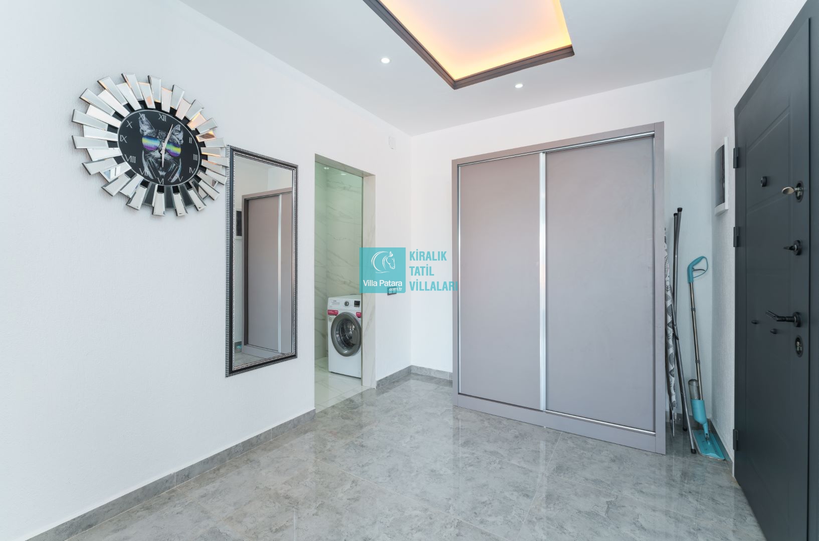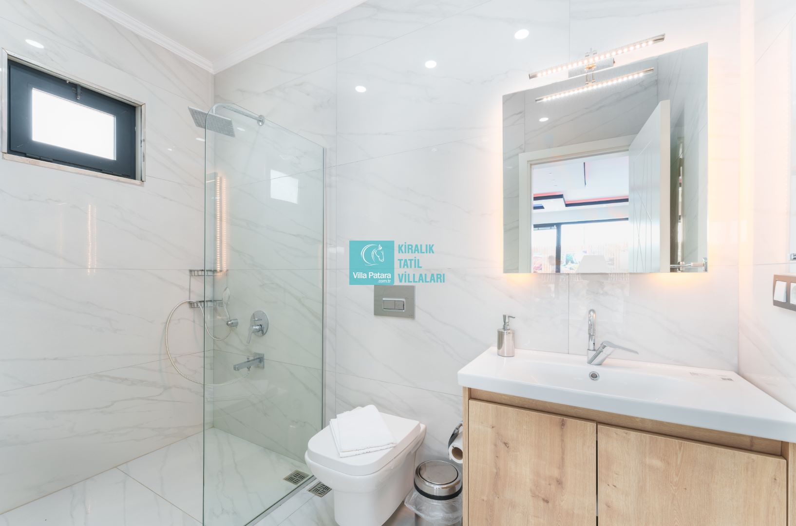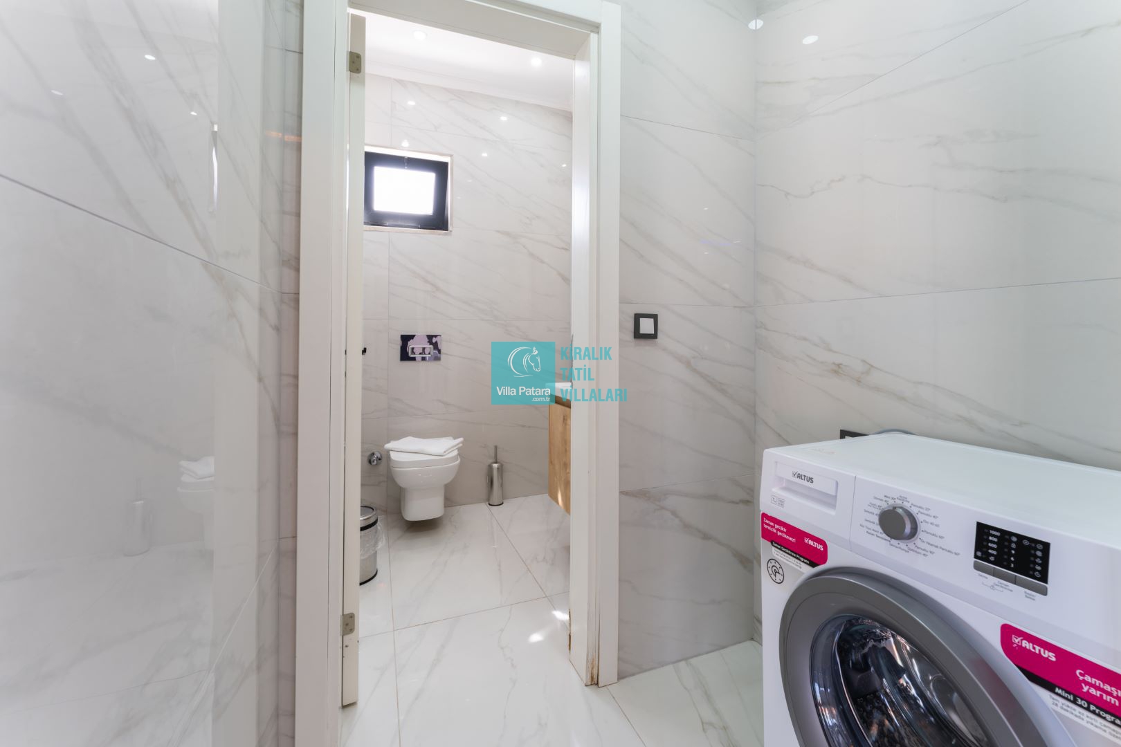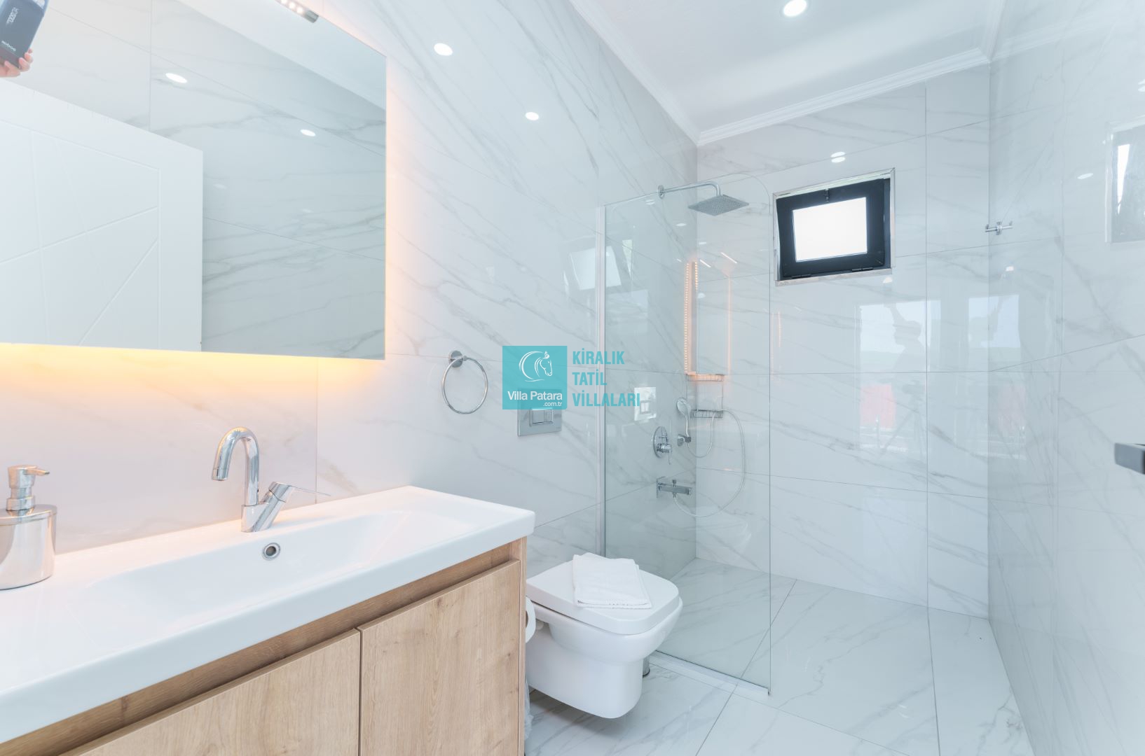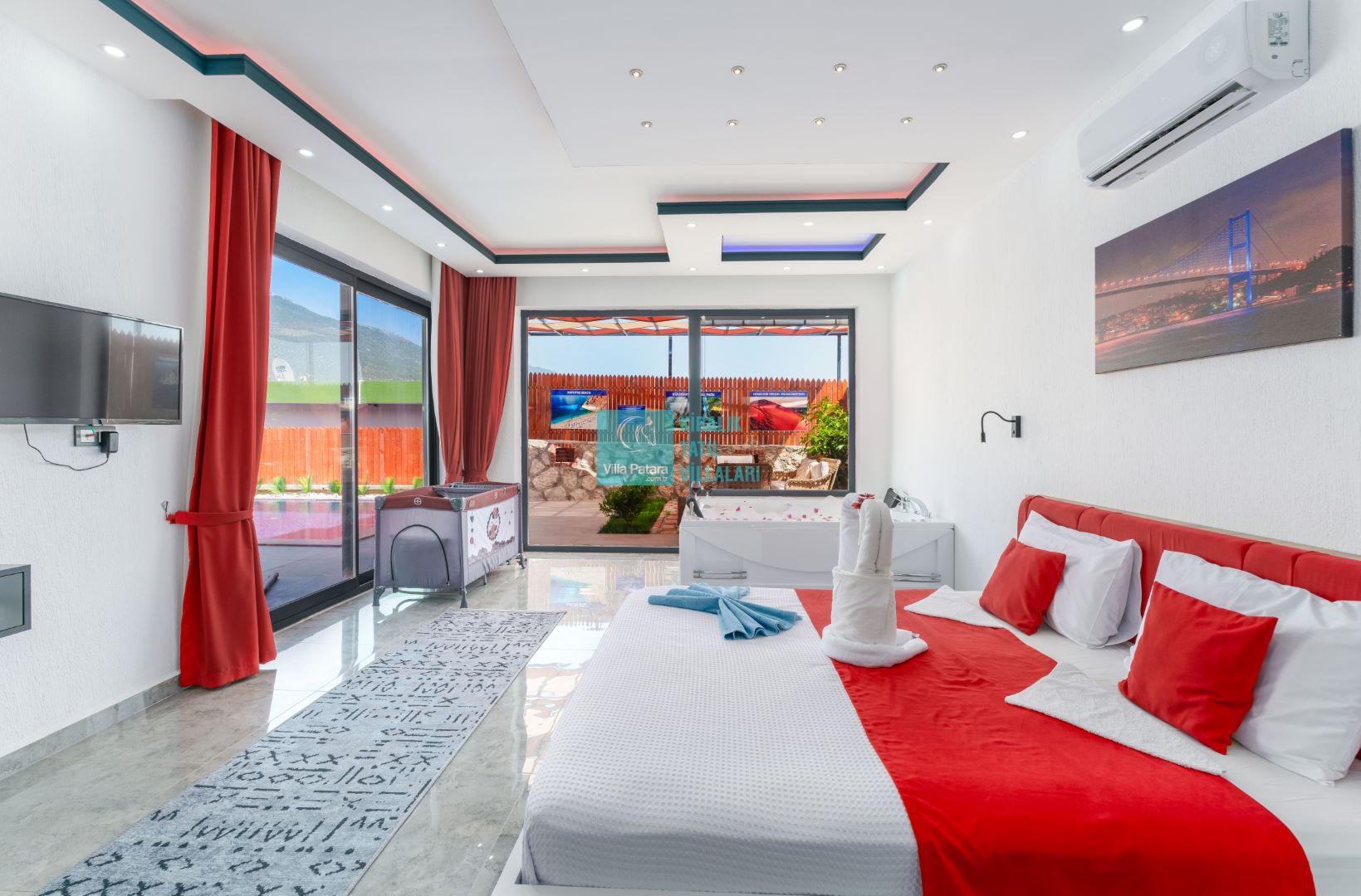 Villamız iki yatak odalıdır. Birinci yatak odasında çift kişilik yatak, banyo, jakuzi, klima ve televizyon; İkinci yatak odası içerisinde iki tek kişilik yatak, banyo ve klima bulunmaktadır. Salon içerisinde mutfak, oturma grubu, tuvalet, klima ve televizyon yer almaktadır.