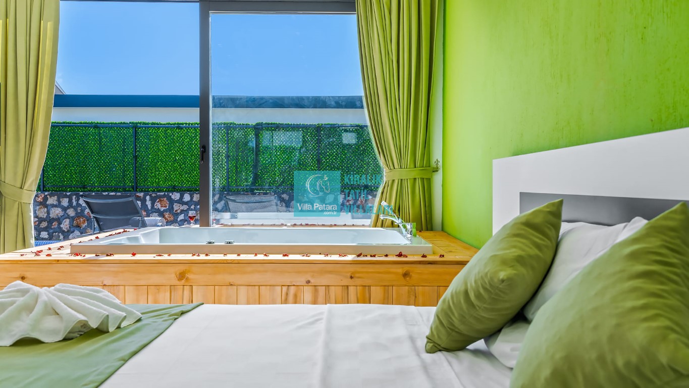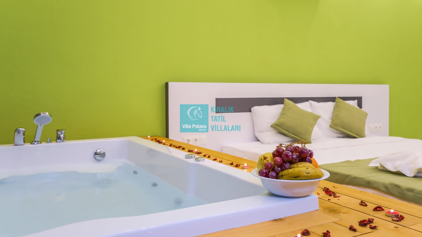 1. Yatak Odası : 1 adet çift kişilik yatak, TV, klima, komodin, makyaj masası, elbise dolabı, jakuzi ve banyo tuvalet bulunmaktadır.