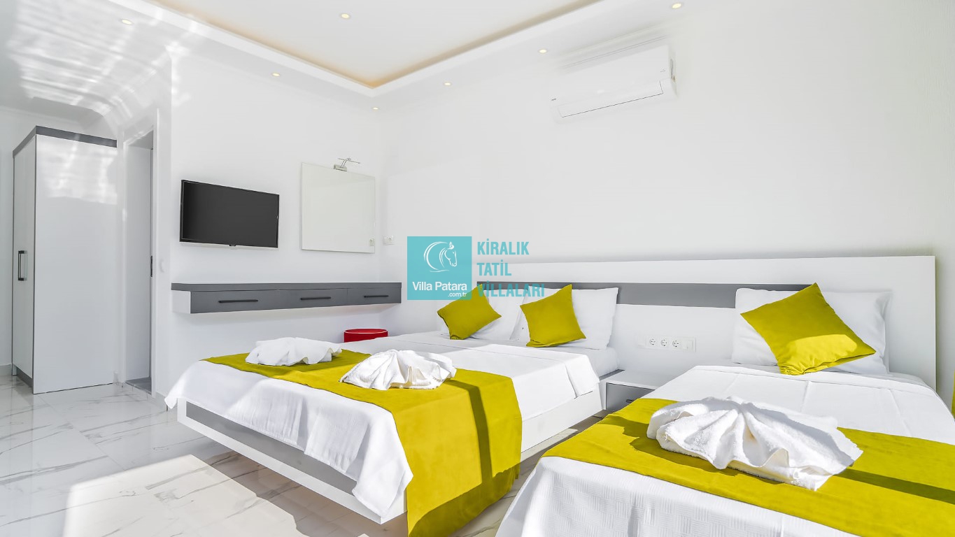 2. Yatak Odası : 1 adet Çift kişilik yatak, 1 adet tek kişilik yatak, TV, klima, komodin, makyaj masası, elbise dolabı ve banyo tuvalet bulunmaktadır.