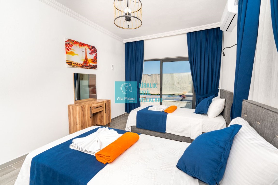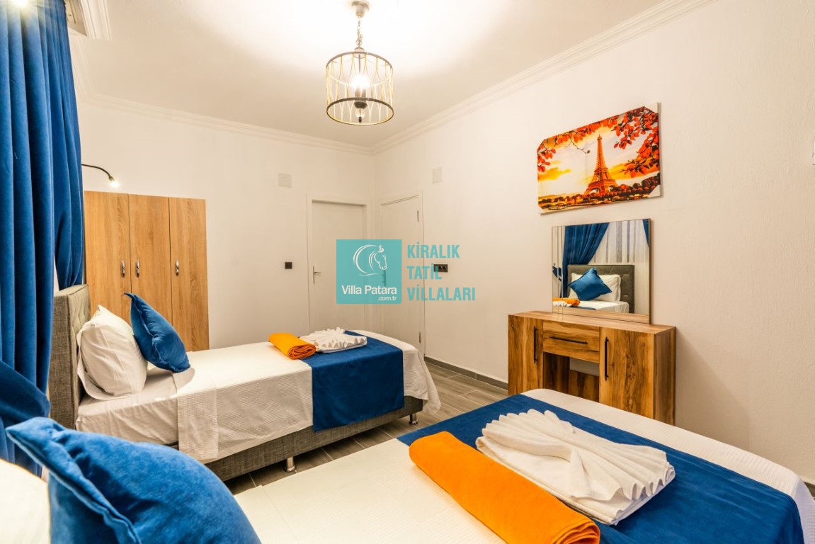 2. Yatak Odası; 2 adet tek kişilik yatak, klima, makyaj masası, elbise dolabı, komodin, tuvalet - banyo bulunmaktadır.