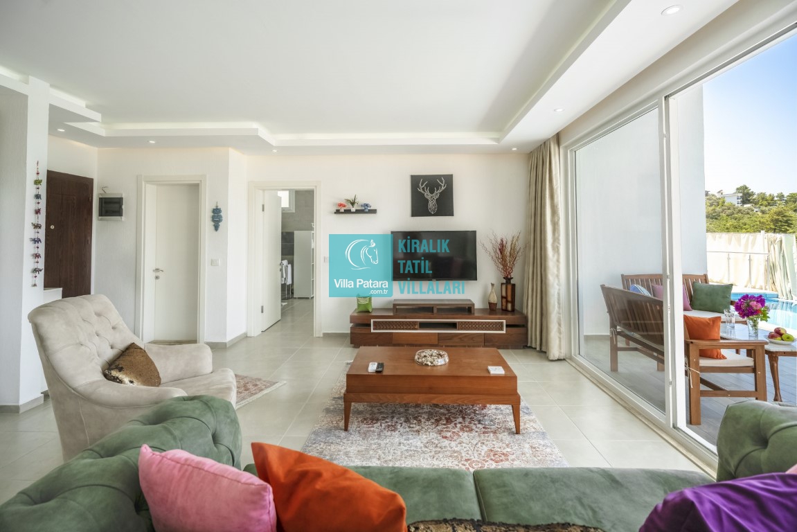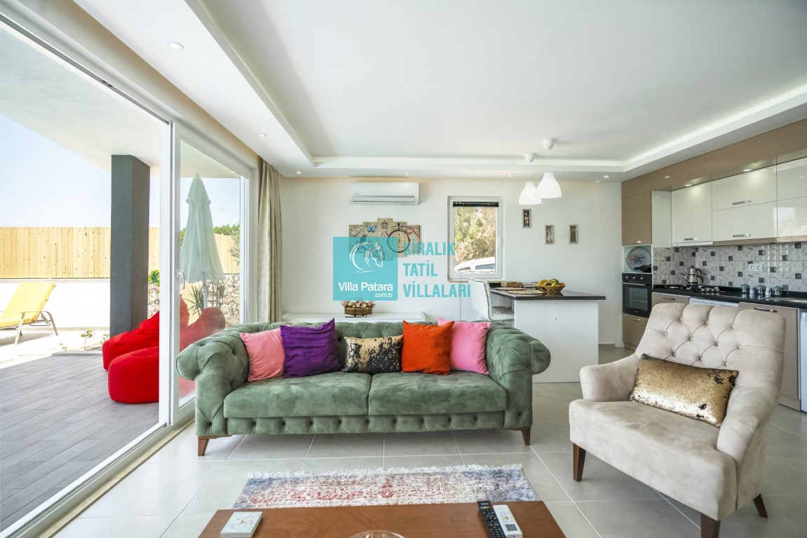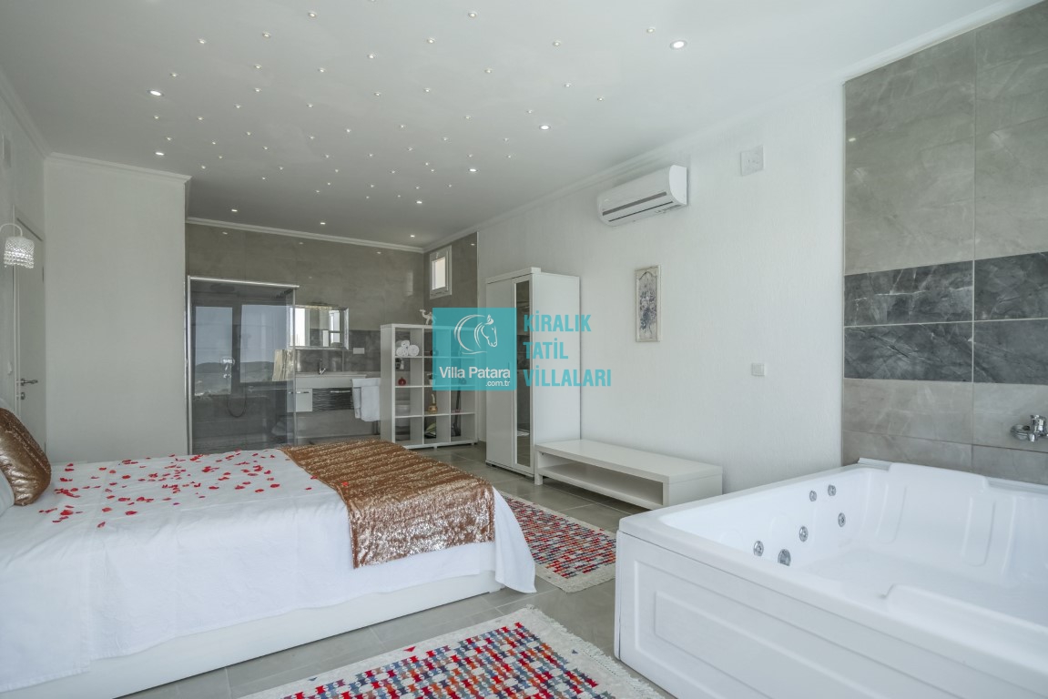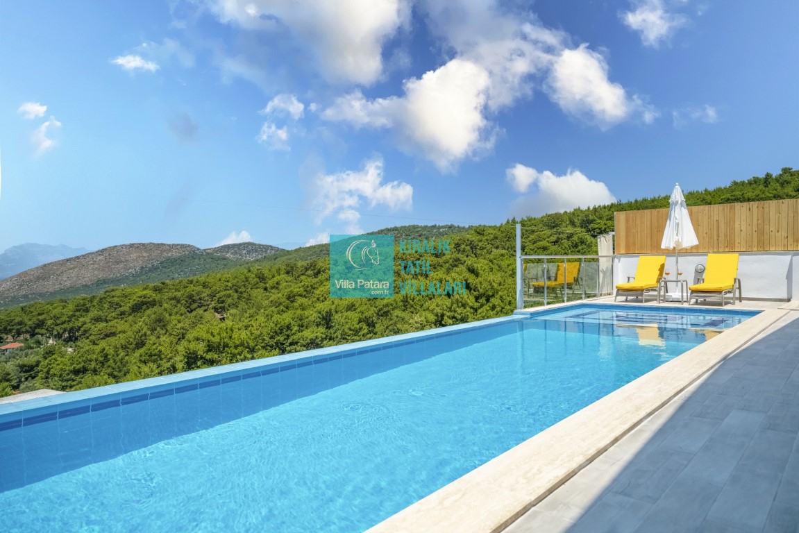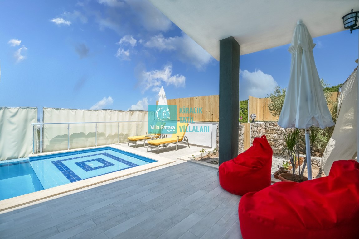 Villa Pandora, 1 yatak odalı, özel yüzme havuzlu balayı evidir. Sadece iki kişinin konaklayabileceği şekilde dizayn edilmiş olan villamızda Amerikan mutfak&salon bulunur. Buradan direk havuz başına çıkış vardır. Havuz terasında, barbekü, şezlong, güneş şemsiyesi, yüzme havuzu bulunur. Yatak odasında güzel bir jakuzi bulunur ve dinlendirici bir tatil imkanı sunar. Kalkan´a aracınızla 4 dakika içerisinde ulaşabileceğiniz konumdadır. En yakın market ve lokanta villamızdan sadece 600 metrelik uzaklıktadır.