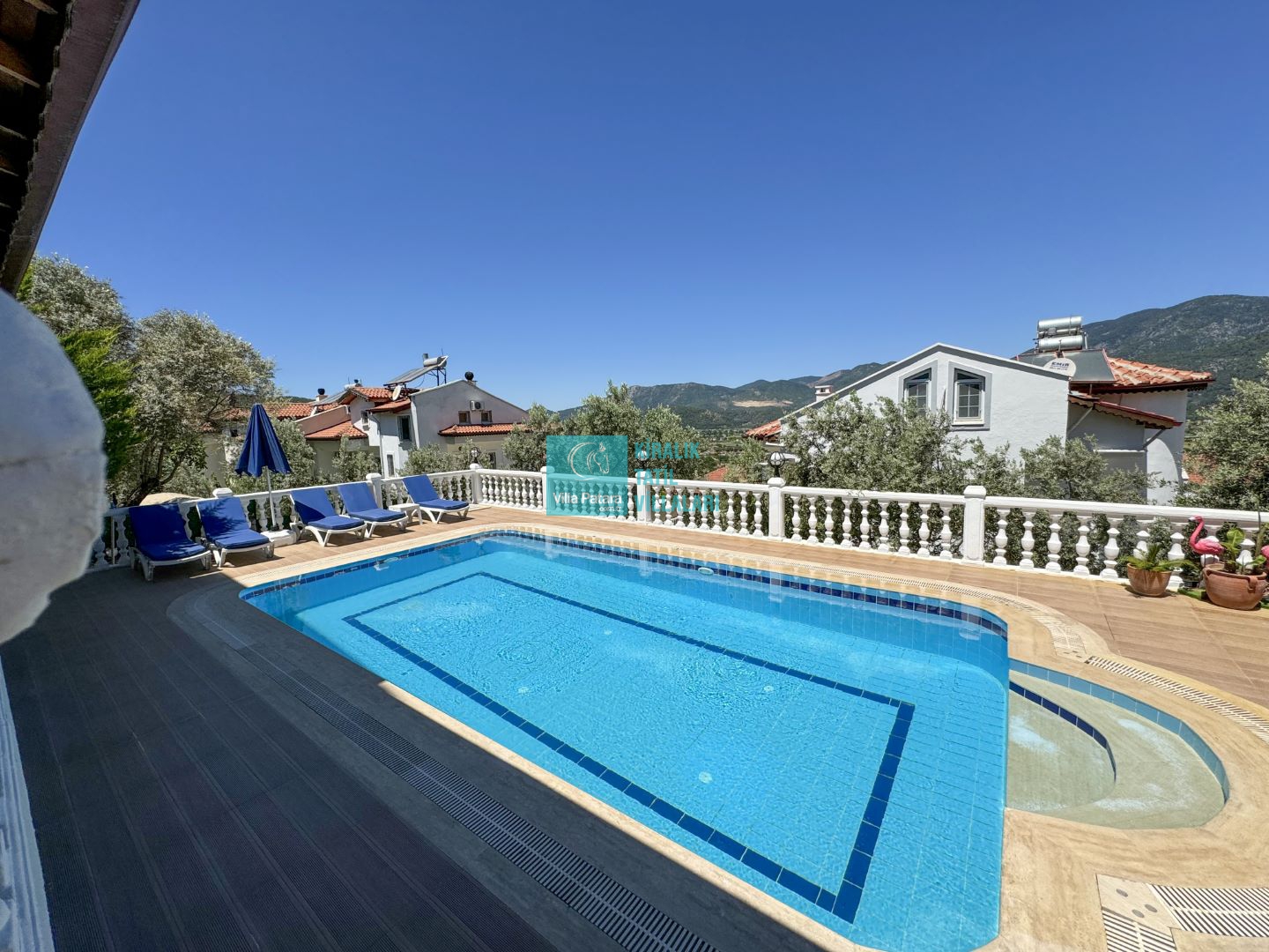 Villa Pandora, Fethiye Yeşilüzmlü Bölgesinde bulunan 5 yatak odalı, 12 kişi kapasiteli özel havuzlu kiralık geniş ailelere uygun villadır. Villamız konum itibariyle sessiz ve sakin bir ortamda olduğundan dolayı huzur dolu bir tatil sizleri bekliyor. Villamızda misafirlerimiz için her türlü araç ve gerek kullanıma hazır halde bulunmaktadır. Yeşilüzümlü bölgesi muhteşem doğası ve havası ile siz değerli misafirlerimize unutulmaz biz tatil imkanı sunmaktadır.