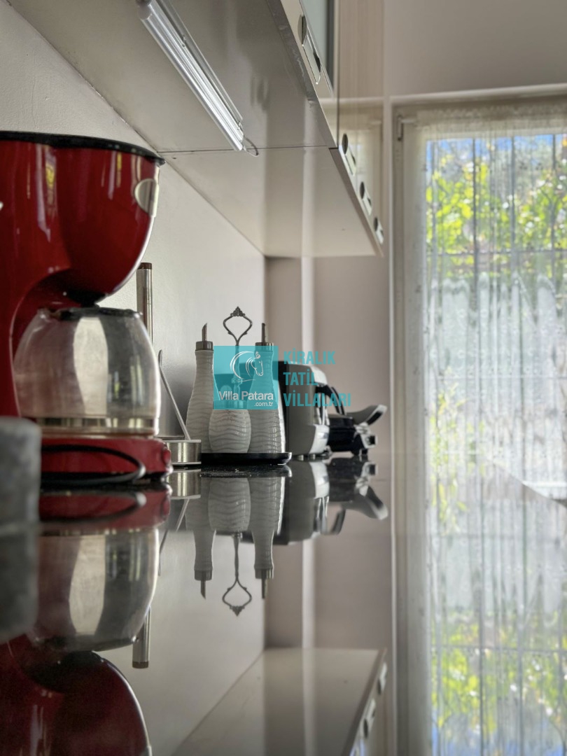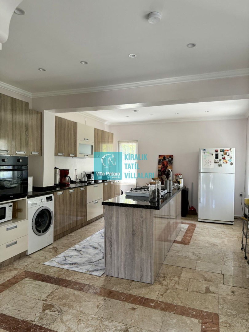 Mutfak: Açık planlı mutfak, 12 kişi ve daha fazla kişiye yetecek kadar mutfak malzemeleri, bulaşık makinesi, fırın, ocak, buzdolabı, mikrodalga fırın, ekmek kızartma makinesi, çaydanlık ve kettle bulunmaktadır.