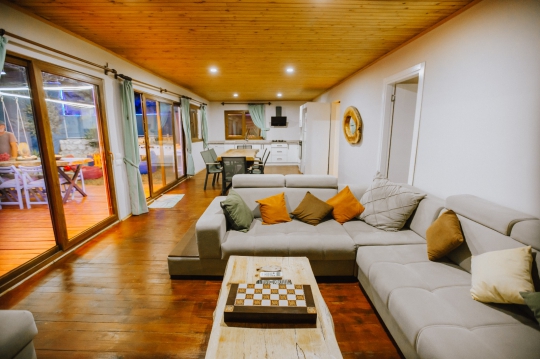 Şık dekore edilmiş salonda, oturma grubu, TV, uydu alıcı ve klima yer almaktadır. Ayrıca salondan havuz terasına çıkışta bulunmaktadır.