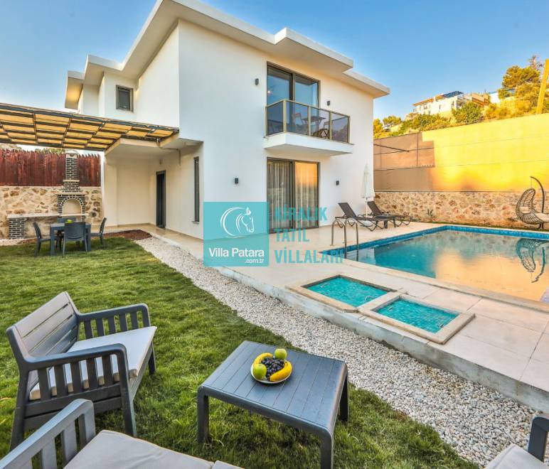 Villa Perla, Kalkan Patara Bölgesi'nde bulunan korunaklı villamız 1 yatak odalı ve 2 kişilik konaklama kapasitesine sahiptir. Villamızın bahçesinde havuz, şezlong, oturma köşesi, yemek masası ve barbekü yer almaktadır. Ayrıca konforunuz için dizayn edilmiş, modern villa içerisindeki yatak odasında jakuzi yer almaktadır. Villamız konsepti ve korunaklı olması sebebiyle balayı çiftlerimiz için oldukça idealdir.