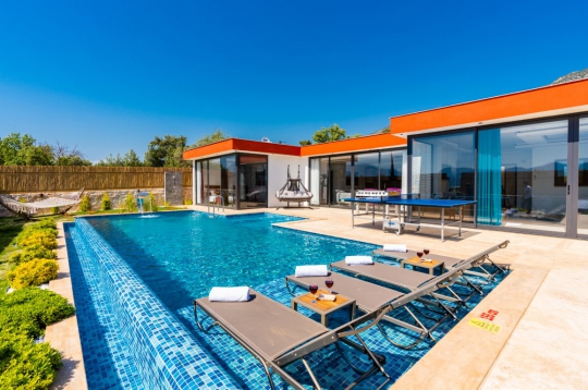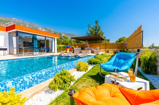 Villa Perla Kalkanın palamut bölgesinde bulunan 2022 yılı faaliyete geçen 4 kişi kapasiteli tatil villasıdır.Doğa içinde hayata geçirilen villamız şehir hayatından sıkılanlar için çok büyük bir alternatif olacaktır.Villa Perla renkli bir havuz terasına sahip olup masa tenisi,langırt ve minik misafirlerimiz için çocuk oyun parkı bulunmaktadır.2 adet yatak odasına sahip villamızın master suit yatak odasında çift kişilik jakuzi bulunmaktadır.Çekirdek aileler ve balayı çiftleri için uygun olan villamızda yılın bütün yorgunluğunu atabileceğiniz sauna da bulunmaktadır.Son derece şık ve konforlu mobilyalar ile dizayn edilen villamızda siz değerli misafirlerimizin her açıdan konforu düşünülerek dizayn edilmiştir.