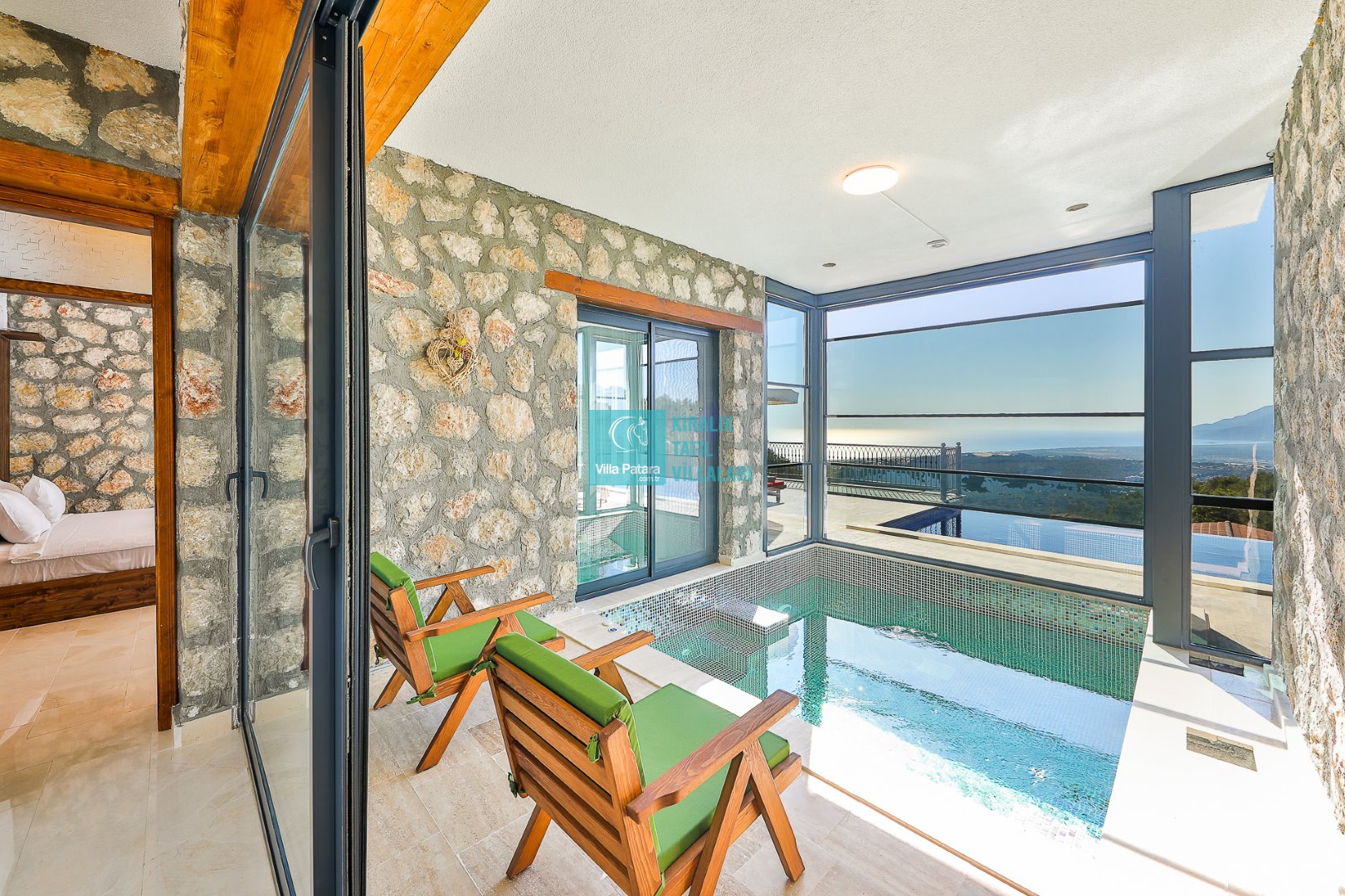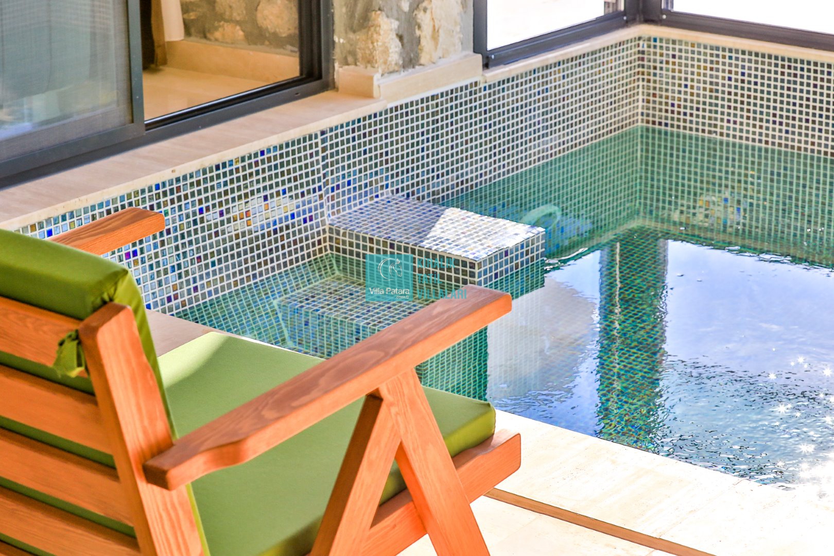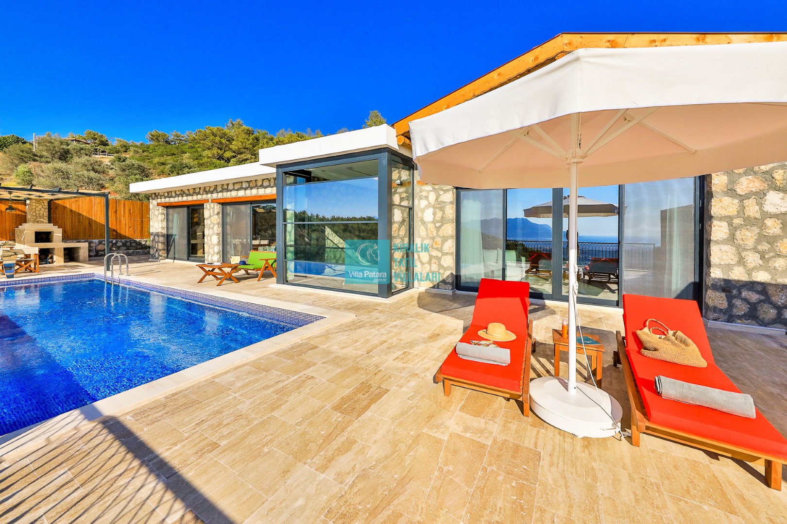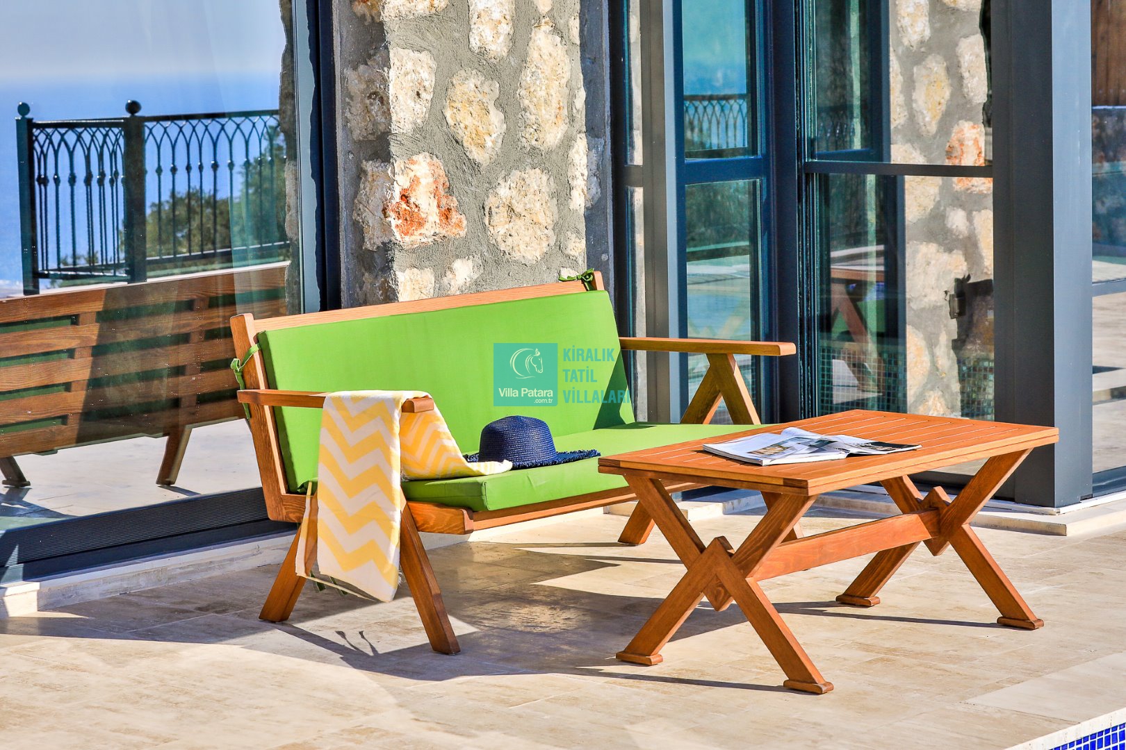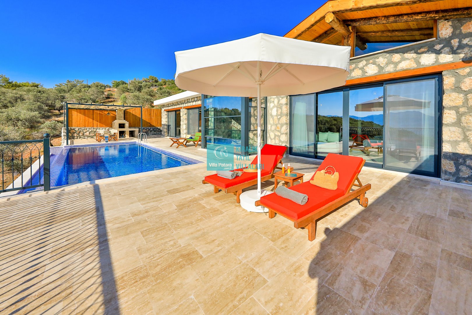 HAVUZ TERASI: Geniş havuz terası ve özel yüzme havuzunun bulunduğu bahçede; muhteşem Patara manzarasına karşı Spa Havuzu, şezlonglar, güneş şemsiyesi,4 kişilik yemek masası, mangal yeri bulunmaktadır.