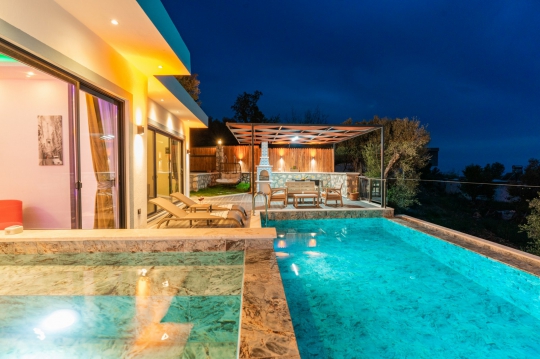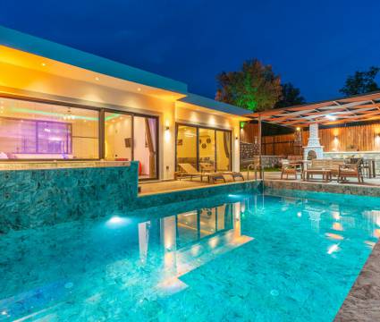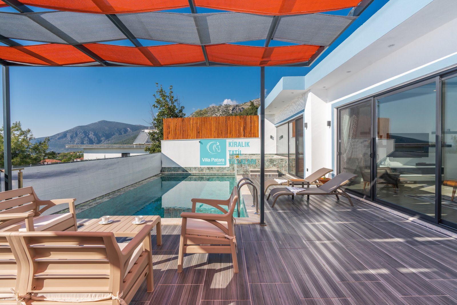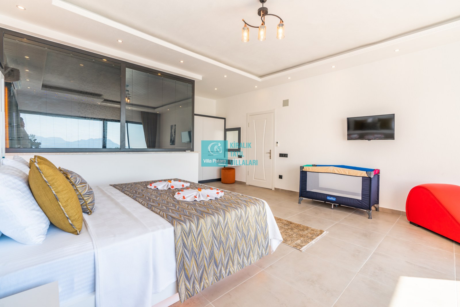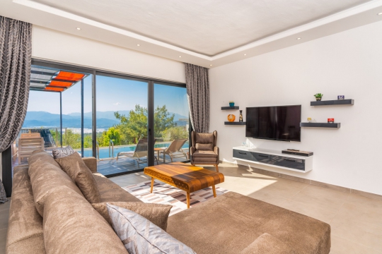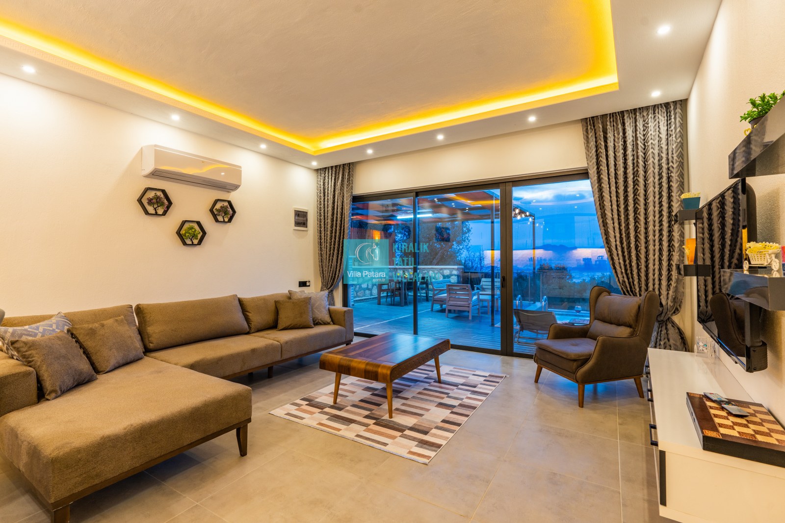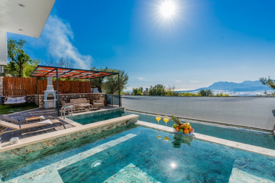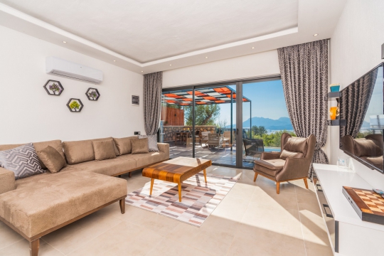 Kalkan Üzümlü mevkiinde bulunan villa, 1 yatak odasıyla 2 kişilik konaklama kapasitesi sunmaktadır. Muhteşem doğa manzarasına hakim olup balayı çiftleri için uygundur. Korunaklı havuz terasında kapasiteye uygun şezlong takımı, oturma grubu, salıncak ve barbekü alanı bulunan villanın, yine havuz terasına açılan oturma odası ve donanımlı açık mutfağı; yatak odasında çift kişilik yatak, ebeveyn banyosu ve jakuzi bulunmaktadır.