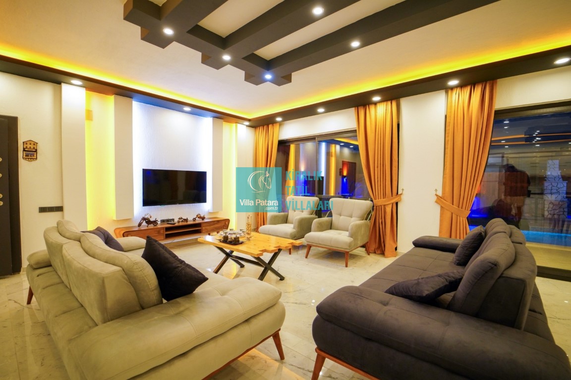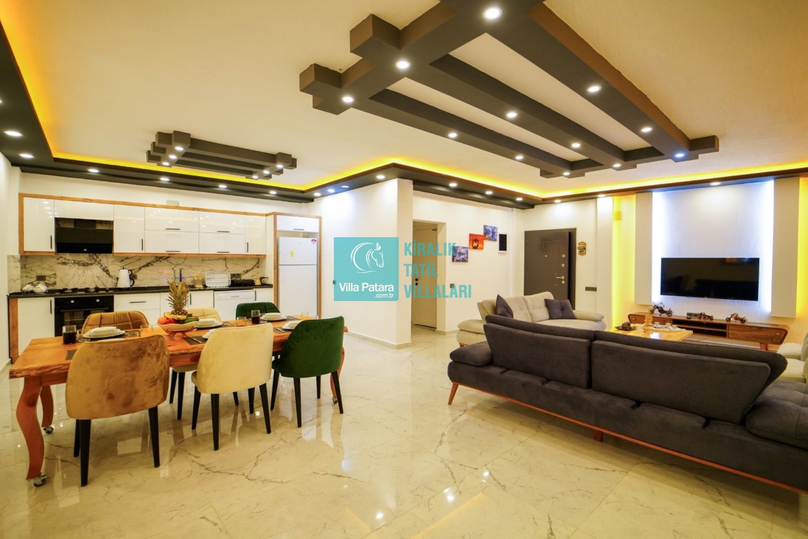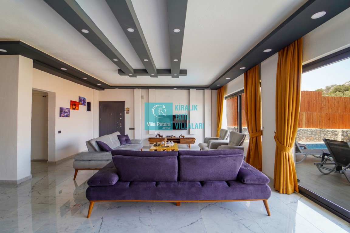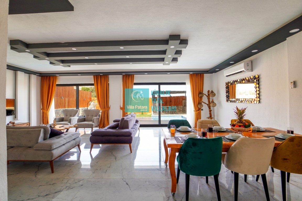 tatil imkanı sunmaktadır. Villamızın salonu modern ve şık mobilyalarla döşenmiş olup misafirlerimizin konforu sağlanmıştır.