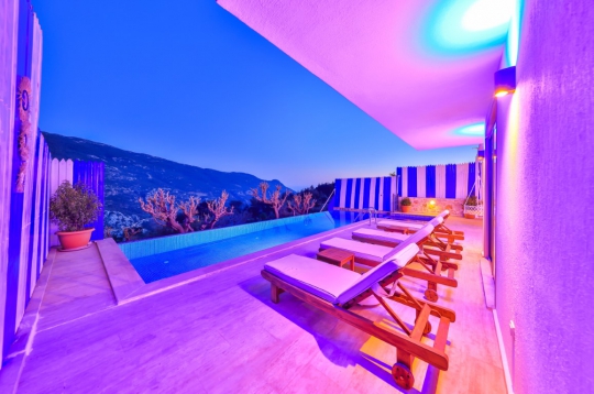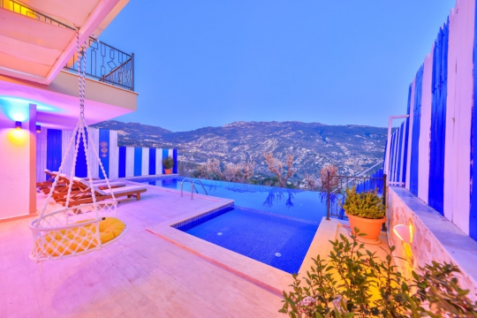 Villa Platin Kalkan İslamlar bölgesinde bulunan Doğa ile iç içe olan kiralık villamız da şehrin gürültüsünden uzakta keyifli bir tatil sizleri bekliyor. Ayrıca villamızın korunaklı özel yüzme havuzu olup dışarıdan görünmemektedir, muhafazakar tatil isteyen ailelerimiz ve balayı çiftlerimiz için oldukça idealdir. Yatak odasında jakuzisi mevcuttur. Kış aylarında şömine sevenler için de villamız tercih edilebilir.