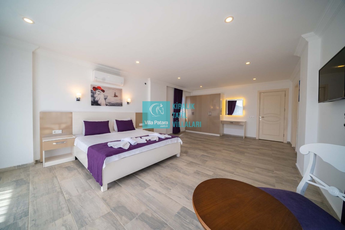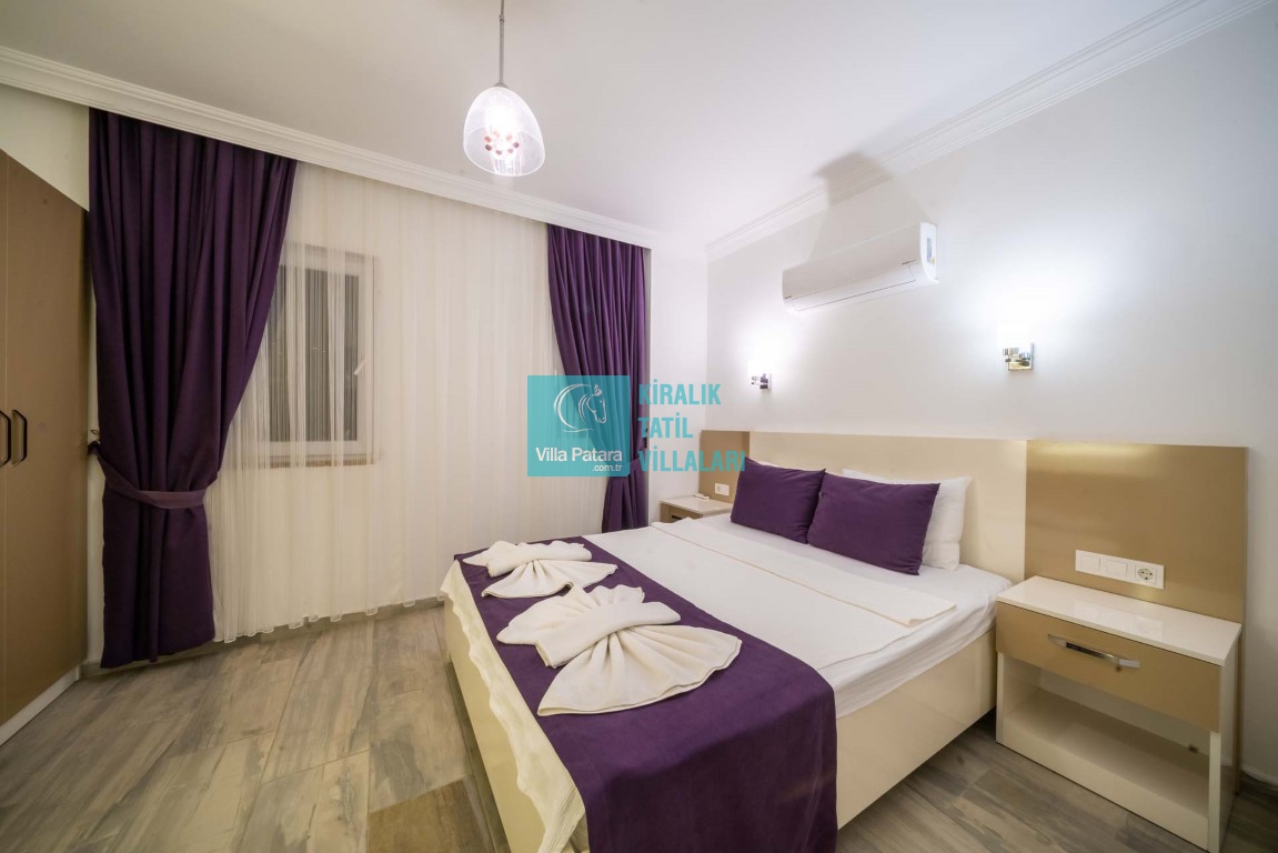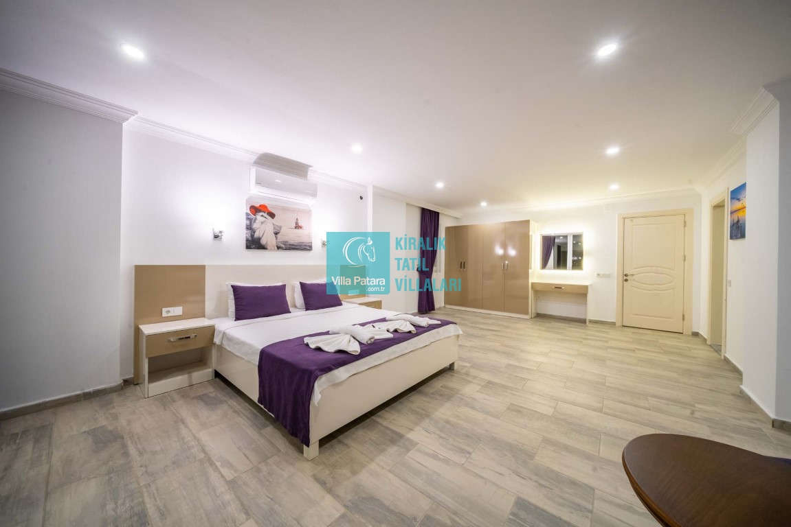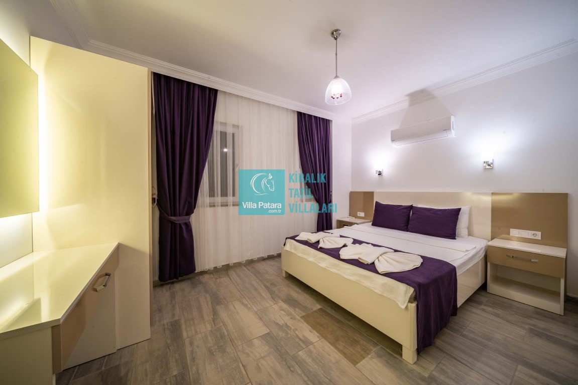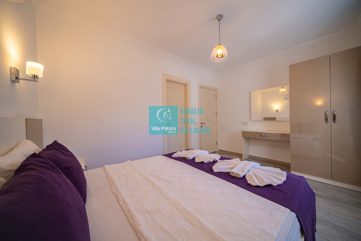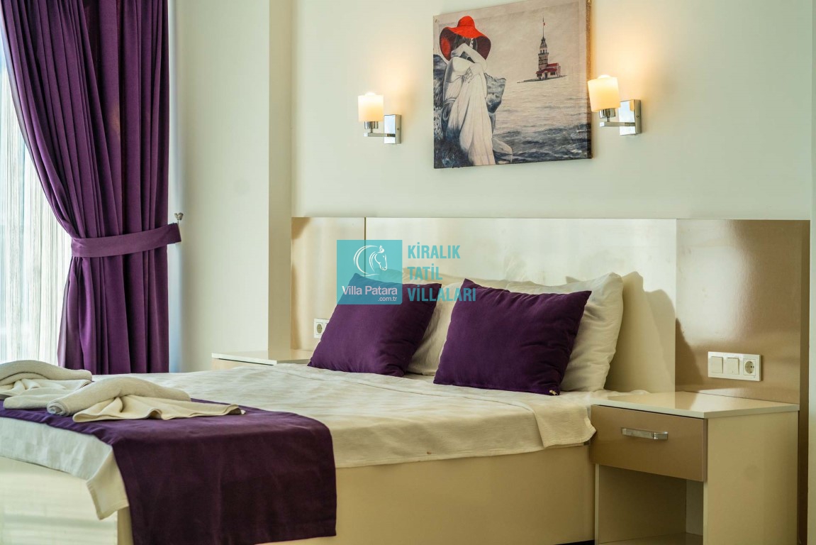 3.Yatak Odası: 1 adet çift kişilik yatak , komodin, elbise dolabı ,makyaj masası, klima, televizyon ve banyo-WC bulunmaktadır.