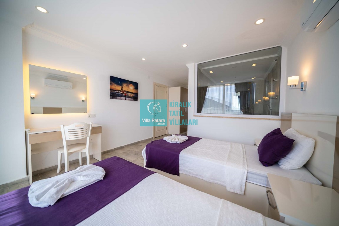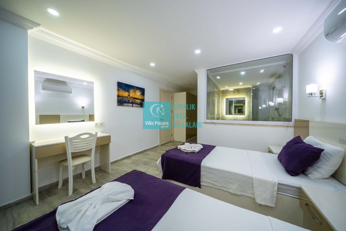 5.Yatak Odası:2 adet tek kişilik yatak , komodin, elbise dolabı ,makyaj masası, klima ve banyo-WC bulunmaktadır.