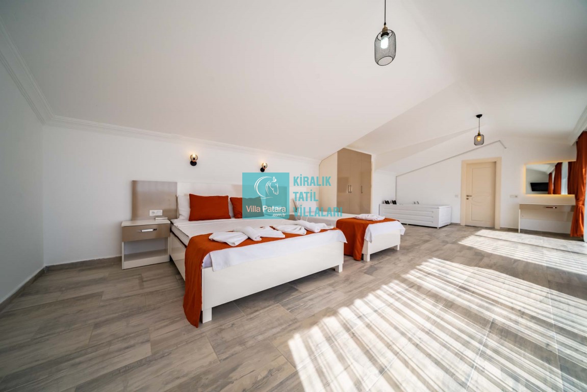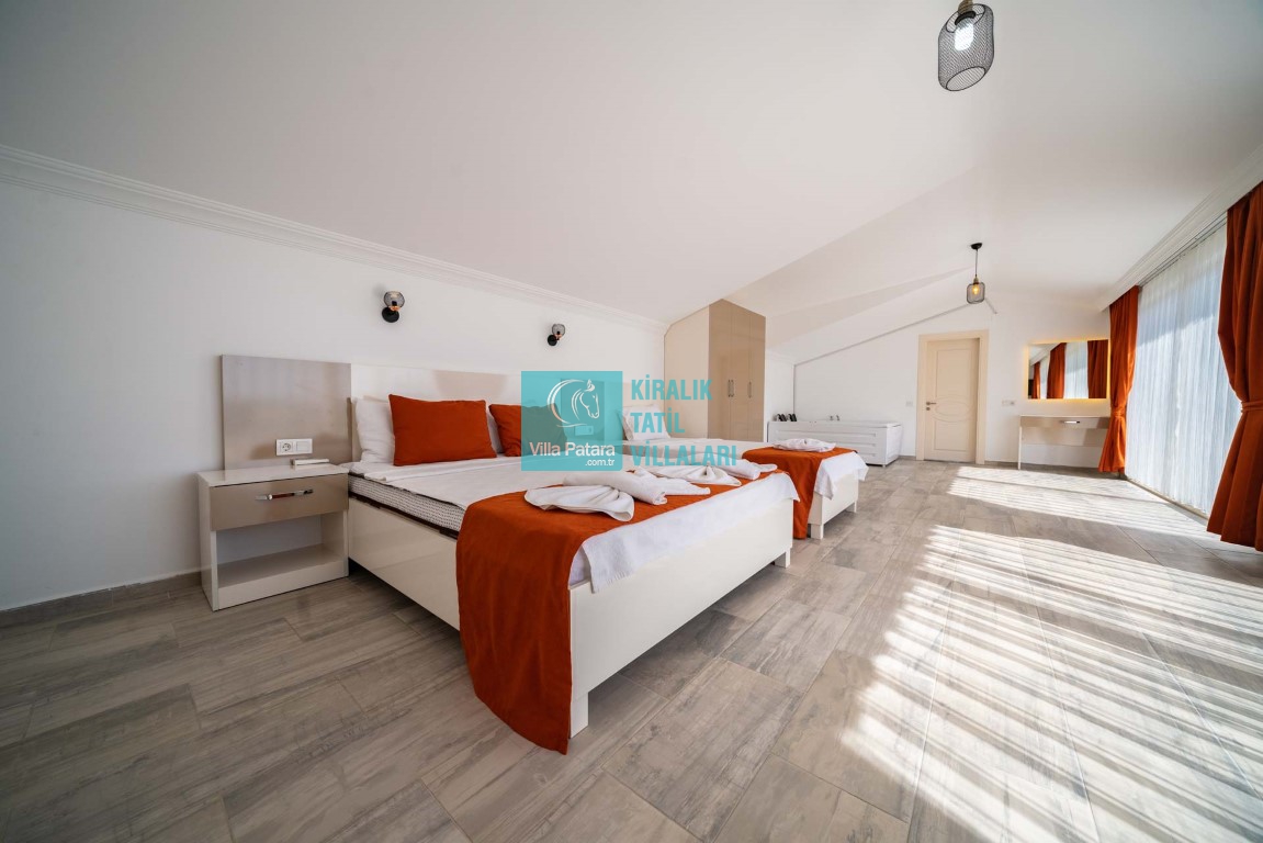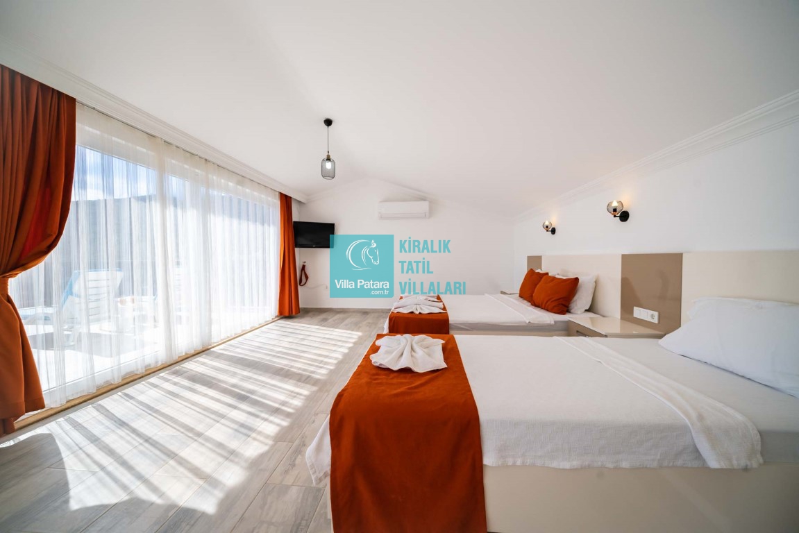 4.Yatak Odası:1adet çift kişilik yatak ve 1 adet tek kişilik yatak, komodin, elbise dolabı ,makyaj masası, klima, televizyon ve banyo-WC bulunmaktadır