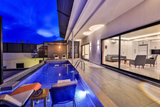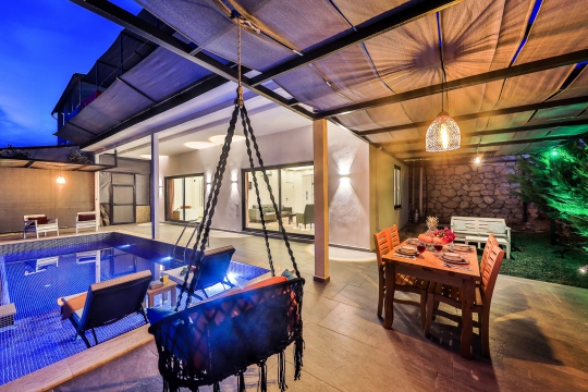 Villamız 1 yatak odası, 1 banyo, jakuzi, şık bir mutfak, salon, barbekü alanı ve havuz terasından oluşmakta. Şehrin karmaşasından uzak sakin bir tatil planlayan müşterilerimiz için villa Pure iyi bir seçenek olabilir.