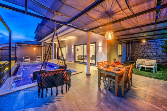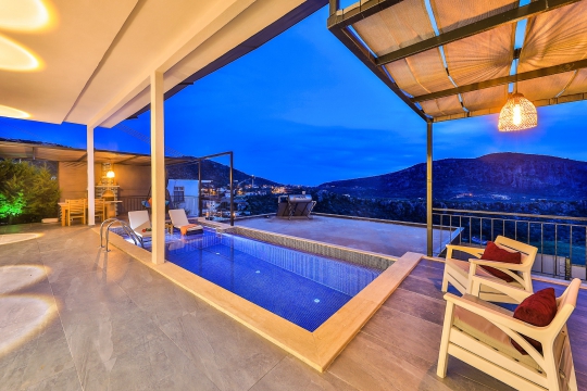 Kalkan Ulugöl mevkisinde bulunan villa 2 kişi kapasiteye sahiptir. Doğa içerisinde yer alan villa tek kattan oluşmakta. Balayı çiftlerinin tercihleri arasında yer alan villa Kalkan şehir merkezine 5 dakika sürüş mesafesinde bulunmakta.