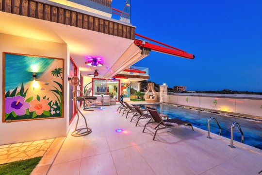 Eşsiz deniz ve doğa manzarsı eşliğinde; jakuzi, bilardo masası,spor aletleri, sinema sistemi,mini mutfak,salıncak,yemek masası ve oturma grubunda keyfini çıkartabilirsiniz.