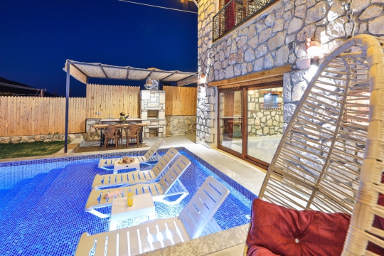 Villa Regnum, Kalkan Sarıbelen bölgesinde yer alan taş mimariye sahip doğa manzaralı villamız 2 yatak odalı ve 5 kişilik konaklama kapasitesine sahiptir. Villamızın korunaklı, geniş bahçesinde havuz, şezlong, oturma köşesi, yemek masası, barbekü ve salıncak yer almaktadır. Modern ve ahşap uyumunun bir arada olduğu Villa Regnum'un içerisinde sinema odası, spor aletler, langrt, masa tenisi, sauna ve jakuzi yer almaktadır.