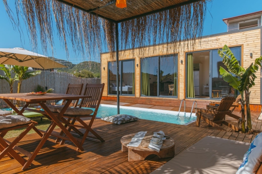 Kaş Bayındır mevkiisinde konumlanmış, 1 yatak odalı 2 kişilik konaklama kapasitesine sahip özel havuzlu Villa Rigel, doğa manzarası, ahşap konseptin sıcaklığı ve ebeveyn odasından bahçeye açılan kapısı ile misafirlerimize ekstra rahatlama imkanı sunuyor. Siz değerli ziyaretçilerine benzersiz bir tatil deneyime yaşatmaya hazır olan villamız, Villamız kiralık balayı villası, huzurlu ve konforlu bir tatil isteyen konuklarımız için en ideal seçeneklerden bir tanesidir. Villamız muhafazakar villalar ve balayı villası kategorisinde yer almaktadır.