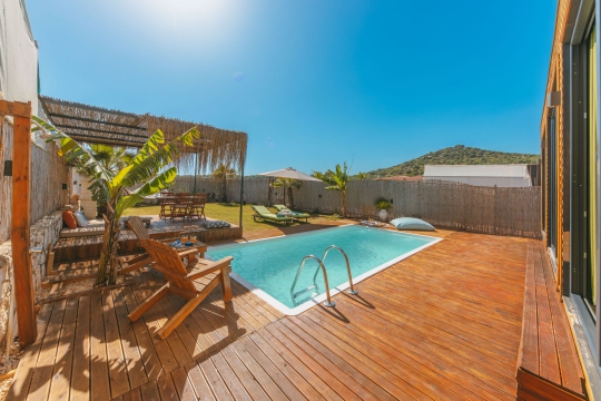 Havuzu korunaklı (Havuzun dışarıdan gözükmediği anlamına gelir) özelliği ile mahremiyete önem veren misafirlerimiz için de tatil imkanı sunmaktadır.