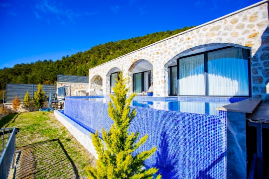 Doğa manzaralı ve geniş bir havuzu bulunan villa, İslamlar bölgesindedir. Tek kattan oluşan kiralık villa özel havuzunun yanında geniş bir oturma alanına sahiptir. Doğa içerisinde konumlanan kiralık yazlık balayı çiftleri ve muhafazakar aileler için idealdir. villanın iç dekoru doğal taşlardan oluşur. Bu da villaya ayrı bir hava katar. Havuz terası korunaklı olan kiralık villa civardaki villalarda konaklayan misafirler tarafından görünmenizi engeller. 6 misafir kapasiteli yazlık villa 3 yatak odası, 4 yatak ve 3 banyoya sahiptir. Yatak odalarının birinde çift kişilik jakuzi vardır. Açık otoparka sahip villa içerisinde bir evde olması gereken tüm elektronik eşyalar ve mobilyalar bulunur. Bol dolaplı bir mutfağa sahip olan villada misafirler diledikleri zaman diledikleri yiyecek içecekleri yiyip içebilirler.
