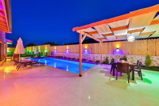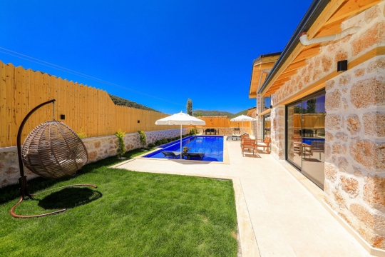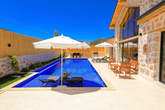 villa Rustik, Kalkan Sarıbelen bölgesinde konumlanmakta olan 5 kişilik lüks tatil villasıdır. Yapımı, 2022 yılının Mayıs ayında tamamlanmıştır. Lüks ve konforlu bir şekilde dekore edilen villamızın 2 yatak odası bulunmaktadır. Taş mimarisiyle dikkat çeken villamızın, özel havuzu, özel bahçesi, oyun alanı, masa tenisi, çocuk havuzu, jakuzisi vesaunası bulunmaktadır. Havuzu korunaklıbir yapıya sahip olan villamız, muhafazakar tatil için idealdir
