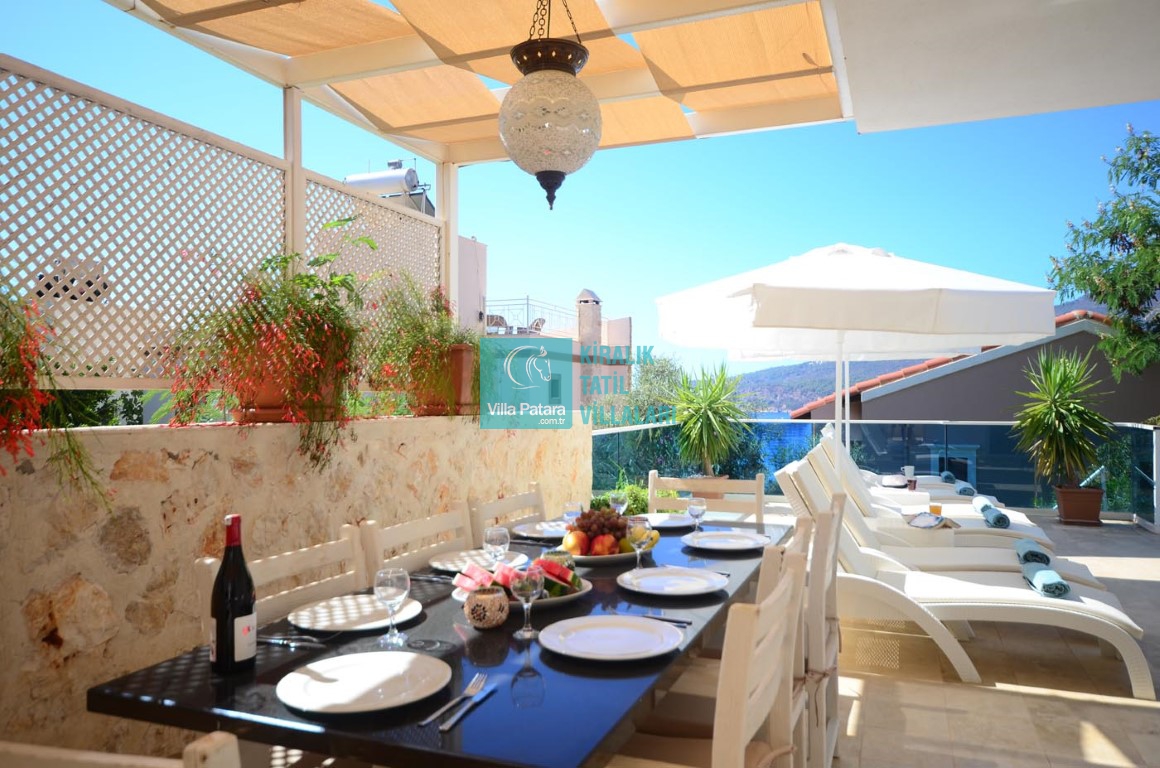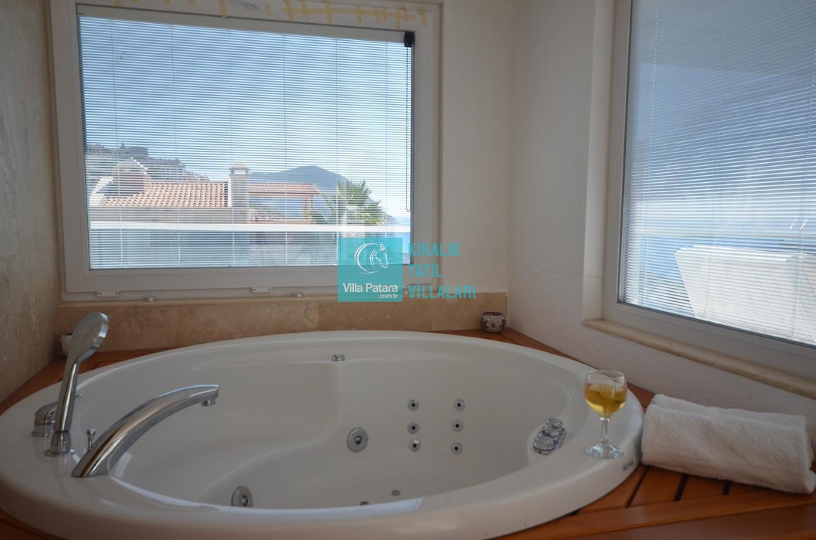 Villa Rüzgar, dünyaca ünlü tatil beldesi Kalkan’ın en gözde yerlerinden olan Kalamar’da bulunmaktadır. Kiralık Villa Rüzgar, eğlenceli, sakin bir tatil ortamı sunmaktadır. Deniz manzaralı, denize ve Kalamar Beach Club’a 100 metre uzaklıkta ve 5 dakika yürüme mesafesindedir. Kalamar Koyu manzaralı, dayalı döşeli, konforlu villamızın yatak odalarında jakuzili banyo yer almaktadır. 3 tane oda eşsiz deniz manzaralıdır.