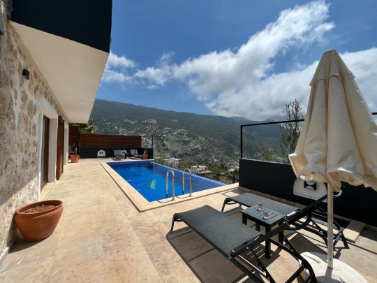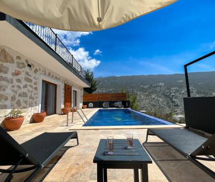 Kalkan İslamlar köyünde bulunan bu tatil villamız 2 suit yatak odası ile 4 kişilik kapasiteye sahiptir. Üst kat ana yatak odasında 1 adet çift kişilik yatak, alt kat genç odasında 2 adet tek kişilik yatak mevcuttur. Villamızın giriş katında oturma odası, mutfak, genç yatak odası ve sinema odası bulunmaktadır. Üst katta bulunan ana yatak odamızda 2.25 mt 3.50 mt ve 1.20 mt derinliğin de jakuzili hidro masajlı havuzumuz mevcuttur. Özel otopark ve internet bağlantısı mevcuttur.