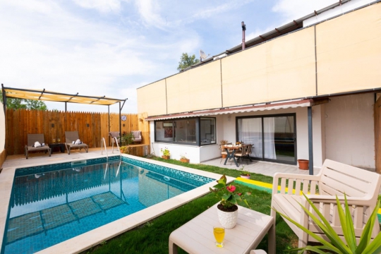 Not: Villamızın havuzu önüne çekilen perde ile villamız tamamen izole ve korunaklı hale gelmektedir.