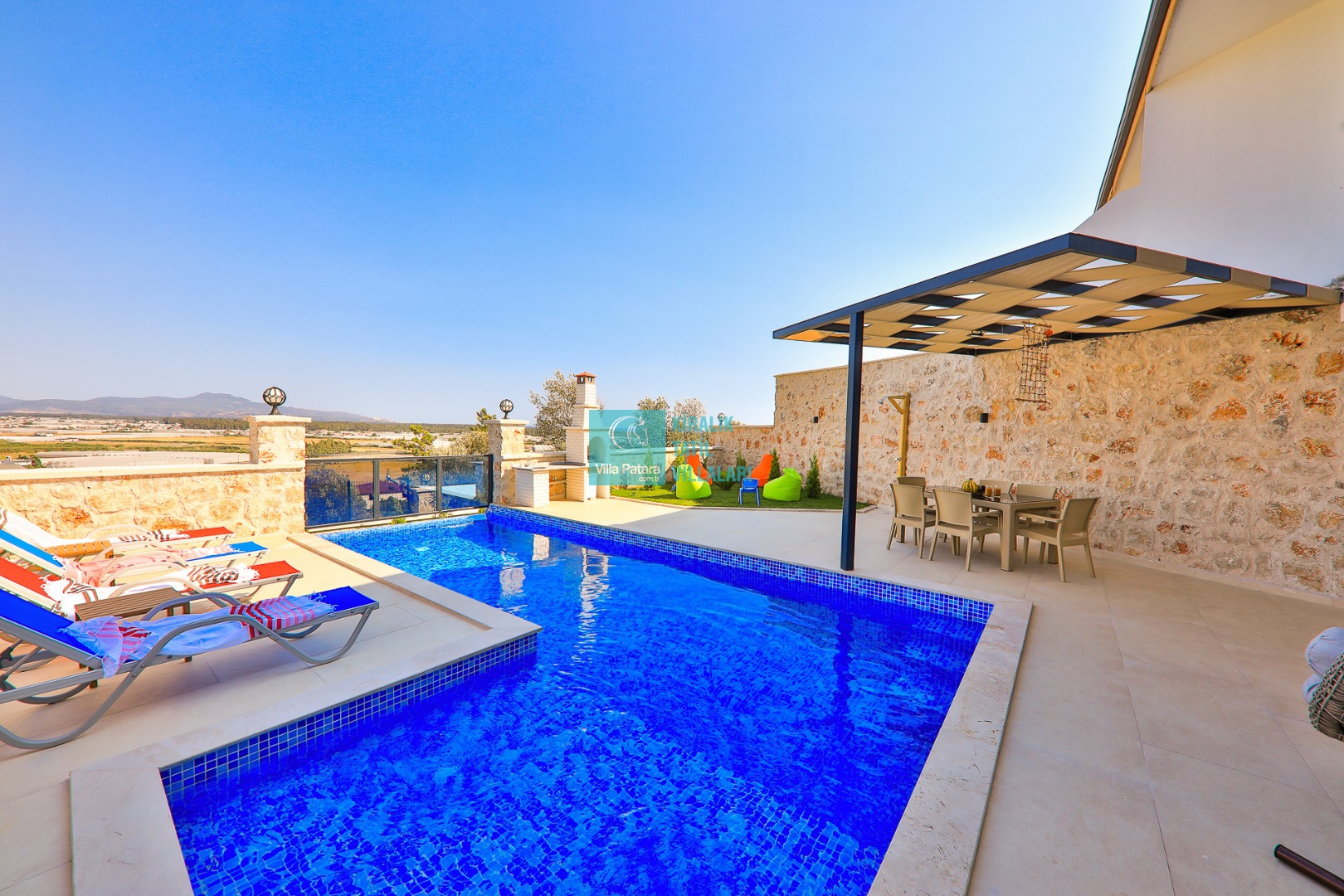 Detayları : Şezlong, güneşlenme şemsiyesi, barbekü, salıncak, armut koltuk , yemek masası ve sandalyeleri bulunmaktadır.