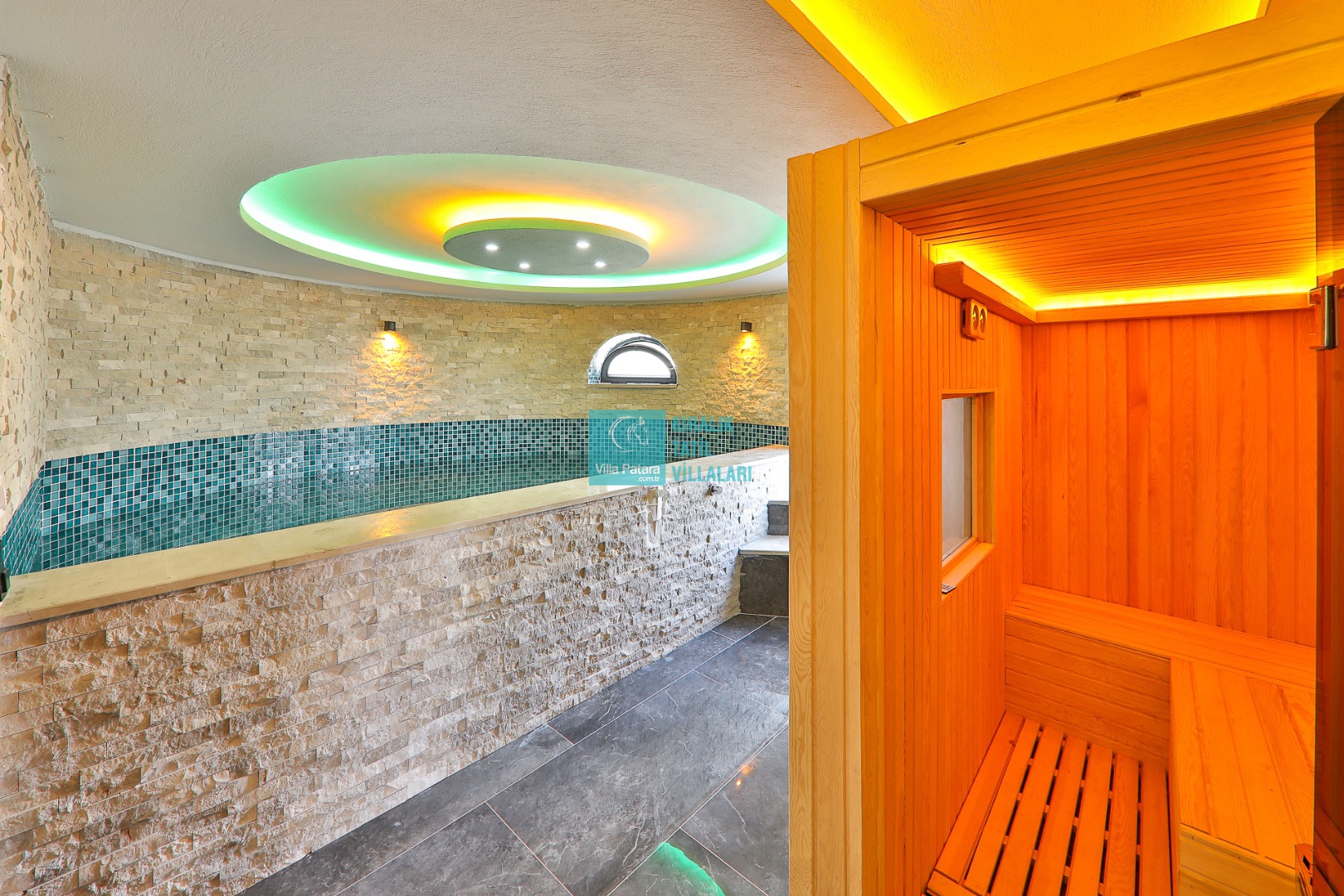 Salon Detayları: LCD TV, modern oturma grubu, yemek masası ve sandalyeler, sauna, hamam, kablosuz modem bulunmaktadır.