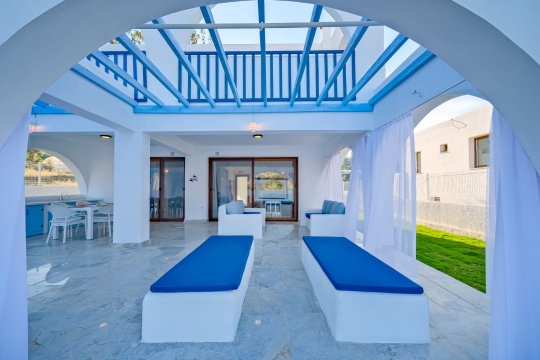 Villa Santorini Ena, Fethiye Esenköy mevkiinde konumlandırılmış olup 2 yatak odasıyla 4 kişi konaklama kapasitesine sahiptir. Modern tasarımlı mimarisi ve ferah mobilyalarıyla kendinizi özel hissedebileceğiniz bütün detaylar düşünülmüştür. 2 yatak odasında çift kişilik yatak ve ebeveyn banyosu bulunan villamız arkadaş grupları ve çekirdek aileler tarafından popüler tercihler arasında yer almaktadır. Havuzunda jakuzi bulunan villamızın teras ve balkonu oldukça geniştir. Doğa manzarasına sahip villamızda aileniz ve sevdiklerinizle keyifli anlar geçirebilirsiniz.