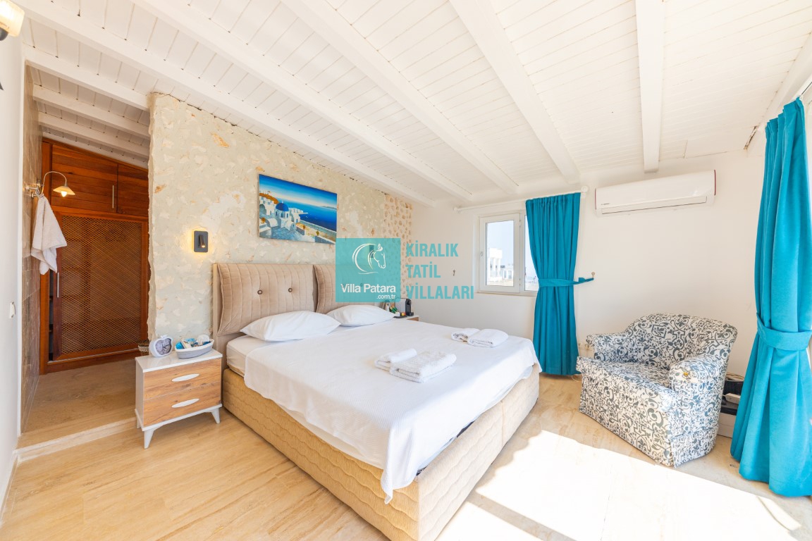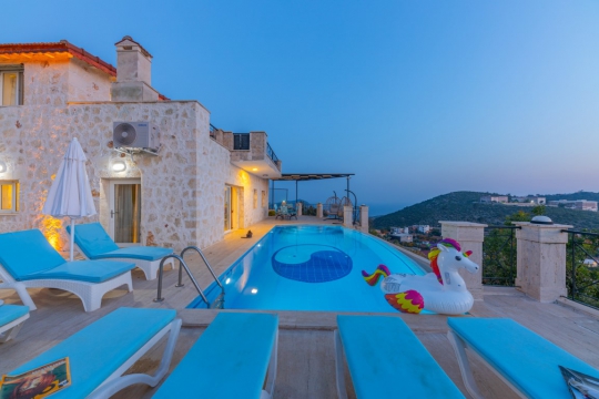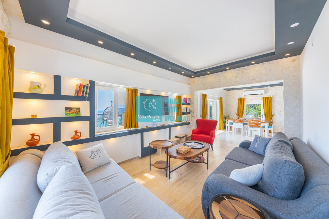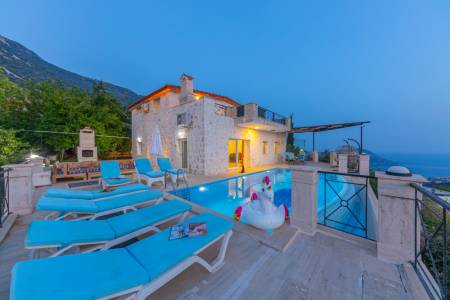 Kalkan Akbel bölgesinde yer alan Villa Sarıyaz, panaromik deniz manzaralı, 6 kişi konaklama kapasiteli kiralık tatil villasıdır. Kartal yuvası konumu ile hem muhteşem Kalkan koyuna hemde Patara plajını gören villamız, Kalkan merkeze 5 dakika sürüş mesafesindedir. Taş mimari yapıya sahip villamız,3 yatak odasına sahiptir.