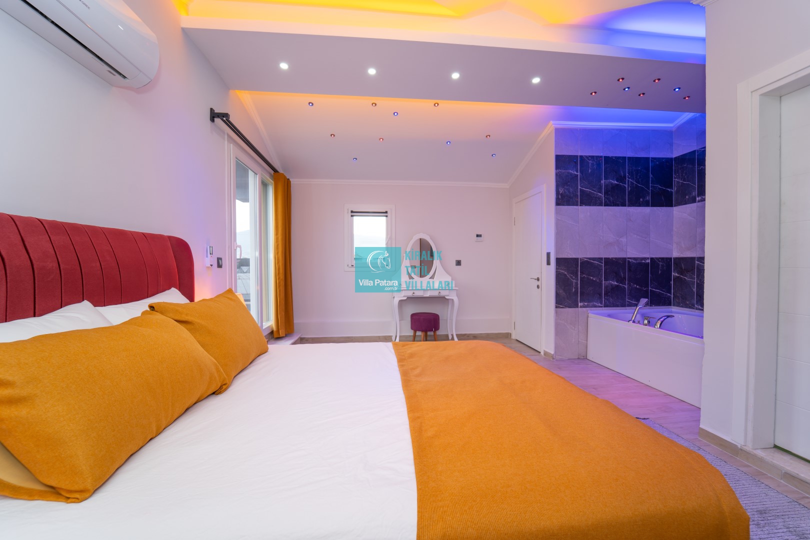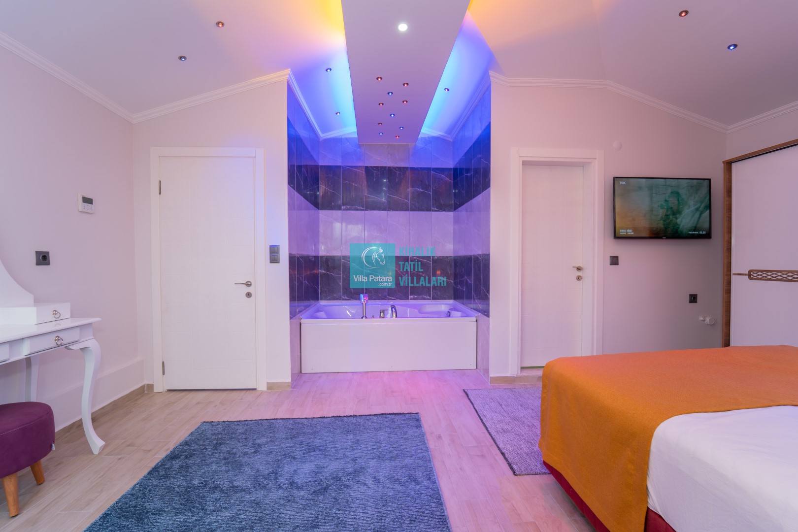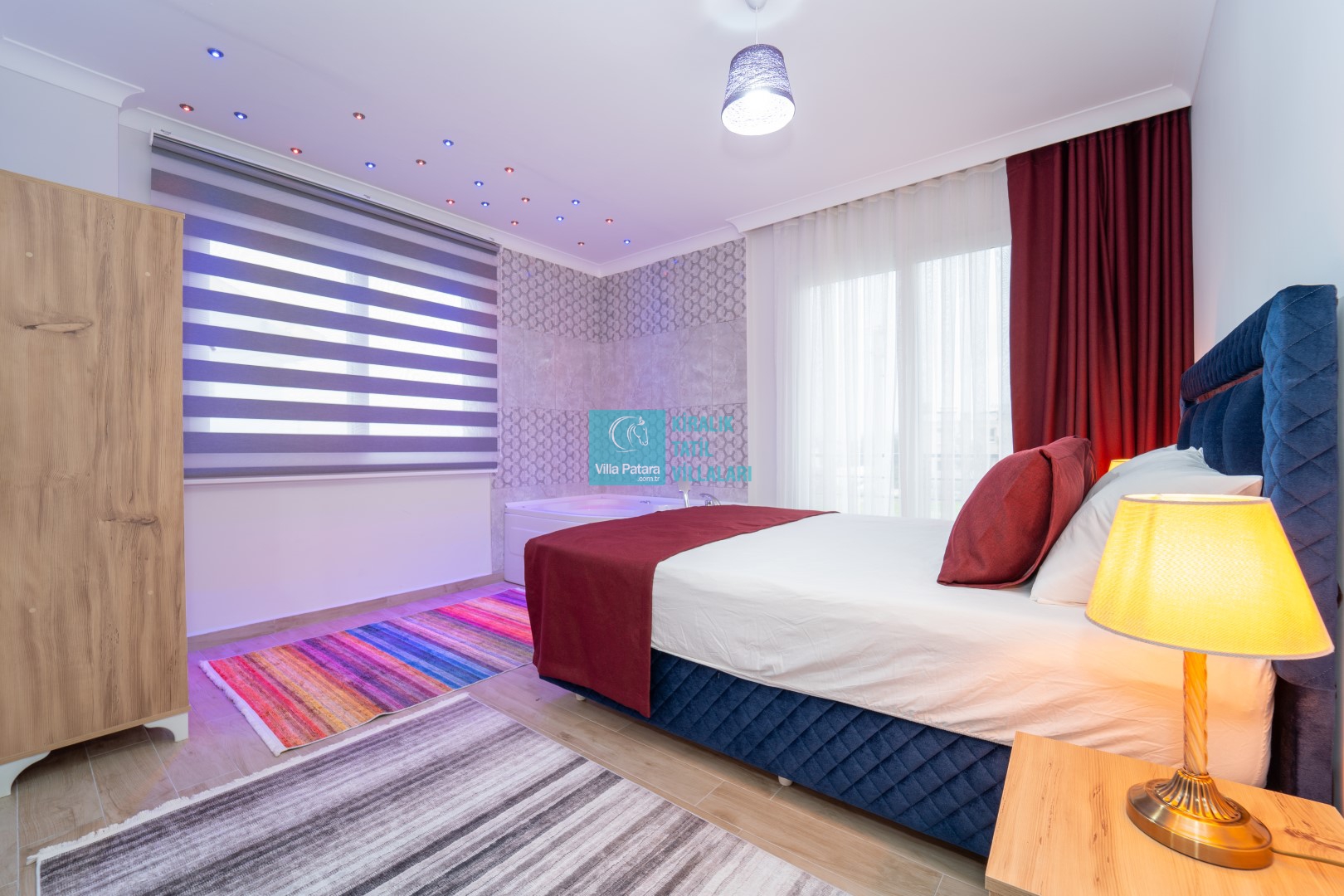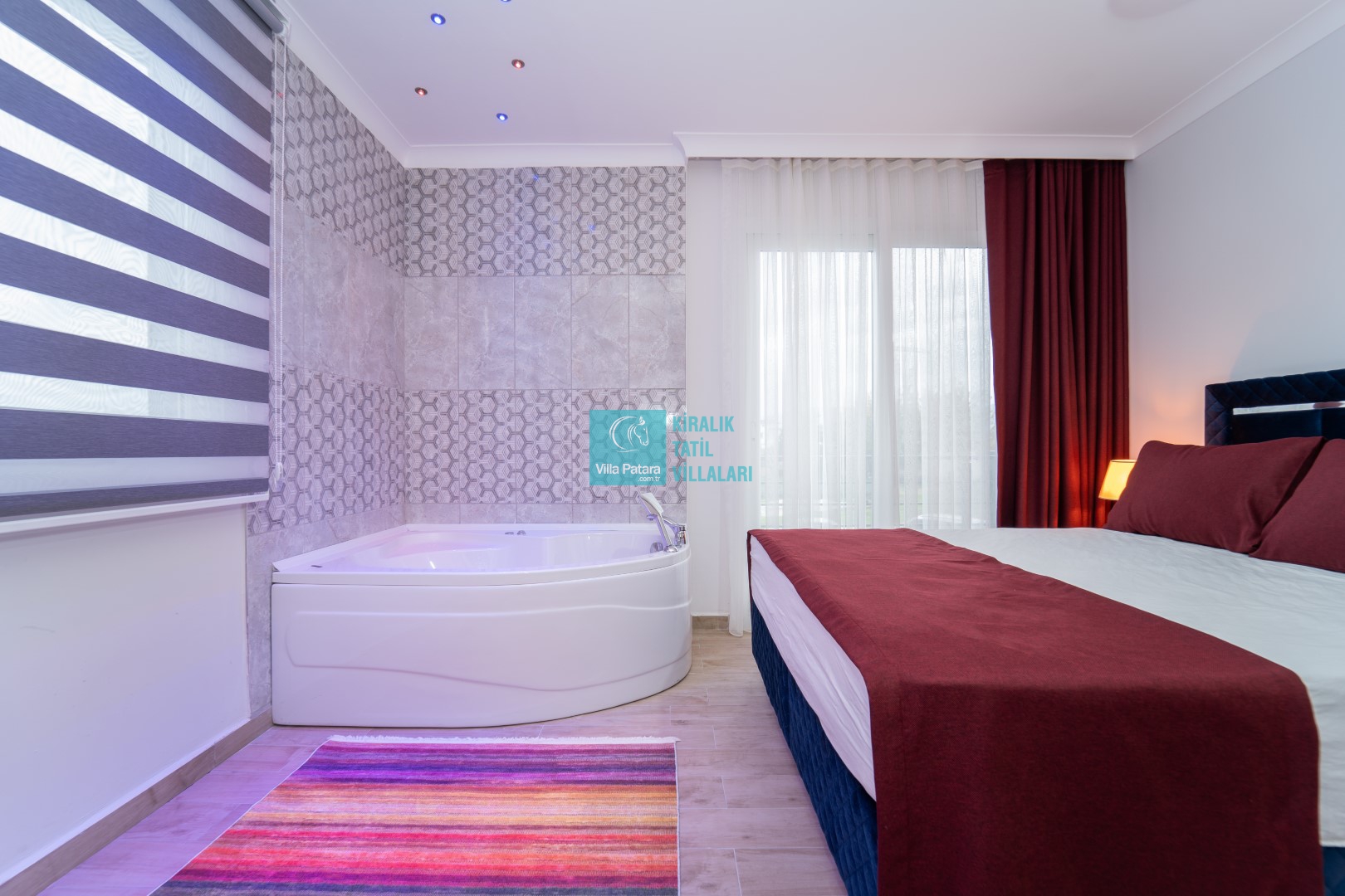 2 yatak odasında jakuzisi ve merkezi konumu ile dikkat çekmektedir. Havuz alanı korunaklı olan villamız, dışarıdan görünmemektedir.