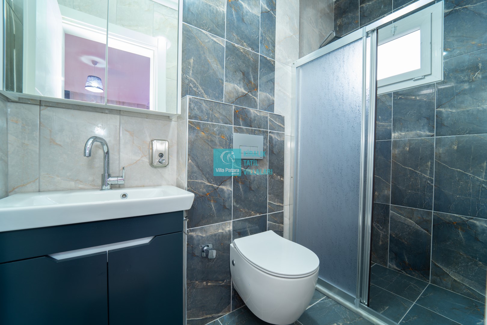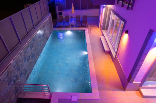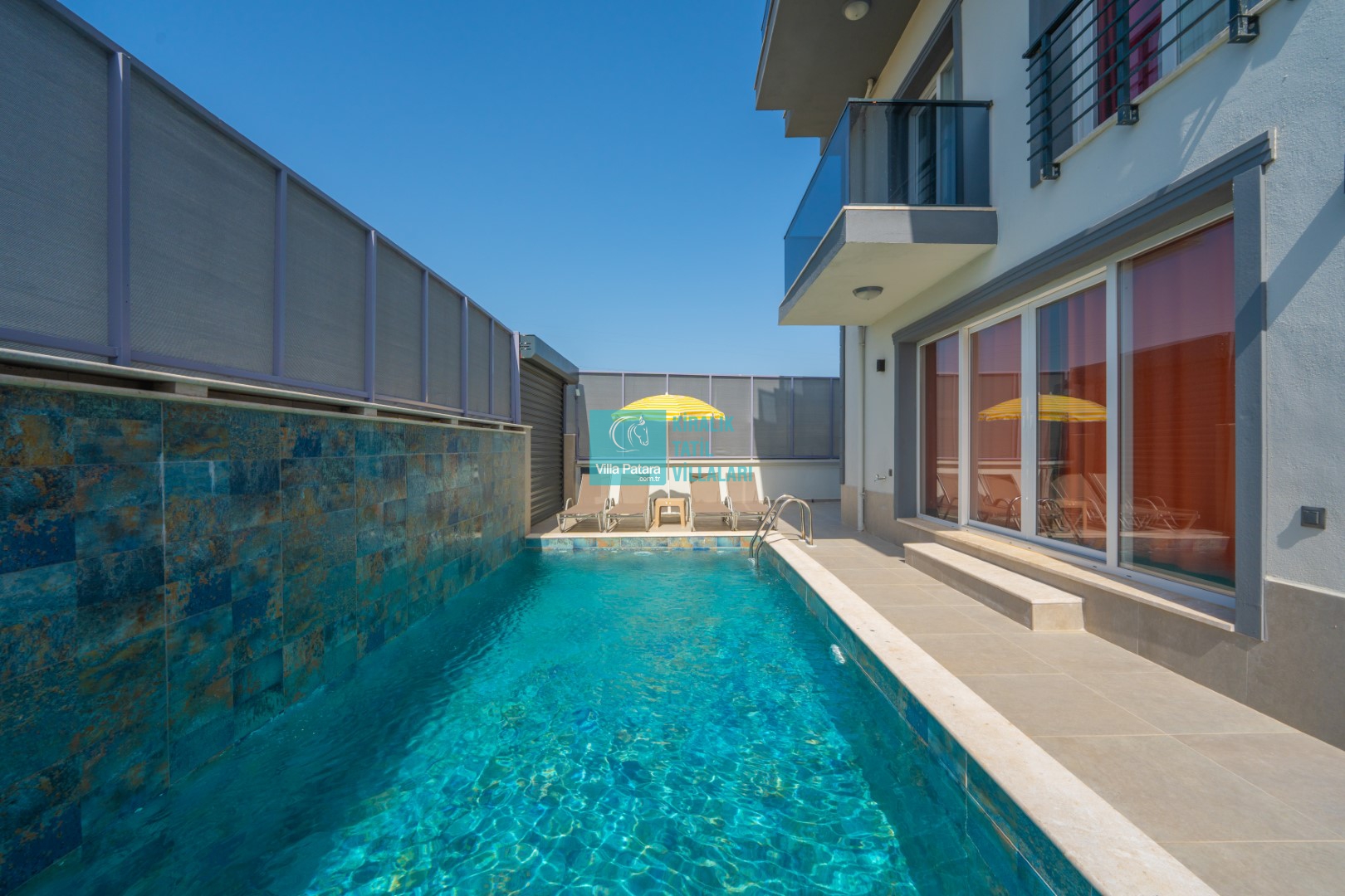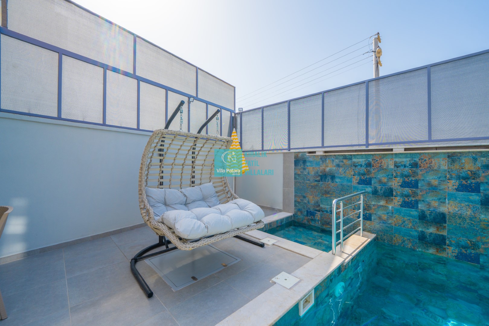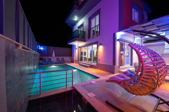 2 yatak odasında jakuzisi ve merkezi konumu ile dikkat çekmektedir. Havuz alanı korunaklı olan villamız, dışarıdan görünmemektedir.