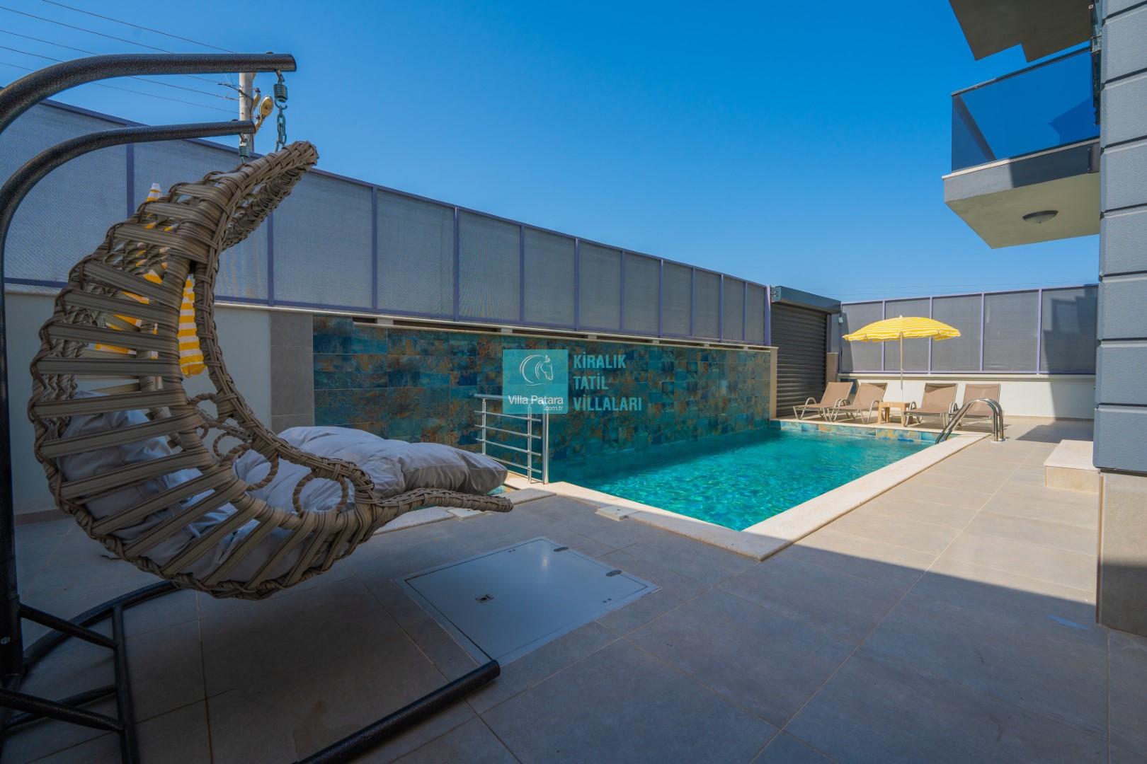 Havuz ve Bahçe Detayı : 7 m x 3,5 m x 1,5 m ölçülerinde özel korunaklı yüzme havuzu, çocuk havuzu, şezlonglar, şemsiye, dış mekan oturma grubu, BBQ, salıncak ve özel otopark bulunmaktadır.
