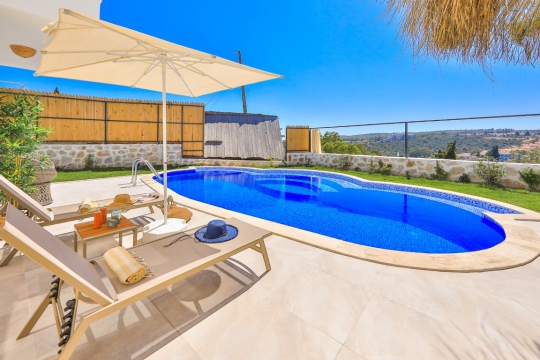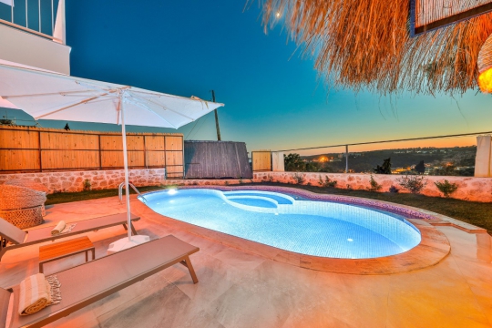 Villa Selene, Likya Medeniyetinin başkenti Patara ya girişte, sol tepesinde konumlanmış, akşam günbatımını seyrederken Akdeniz'in meltemini hissedebileceğiniz bir villadır. 1 yatak odasına sahip bu villamız 2 kişi ağırlayabilme kapasitesine sahiptir. Panoramik bir manzaraya sahip olan villamızda konforunuzu arttırabilirsiniz. Siz değerli misafirlerimizin konforu için özel olarak dizayn edilmiş bu villamızda yatak odamızda özel ebeveyn banyosu, büyük bir jakuzi. Ayrıca saunası davardır. Havuz ve bahçe alanları tamamen dışarıdan gözükmeyecek şekilde dizayn edilmiştir. Bu sebeple muhafazakar aileler tarafından sıklıkla tercih edilmektedir.