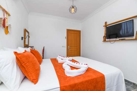 Oturma grubu, uydu alıcı, televizyon, klima, internet, havuz alanına çıkış bulunmaktadır.