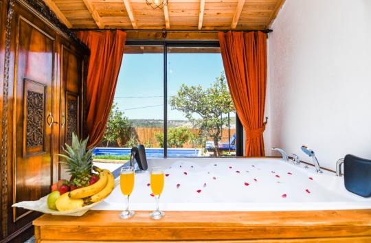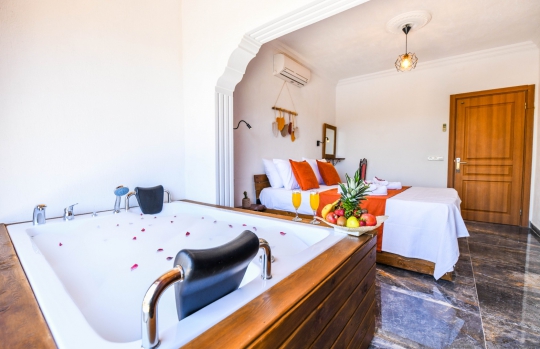 En suit, 1 adet çift kişilik yatak, komodin, televizyon, klima, jakuzi, banyo ve tuvalet bulunmaktadır.